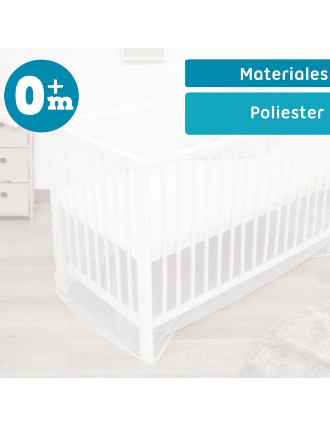 Es perfecta para los meses de calor o para viajes a zonas húmedas donde la presencia de insectos puede ser mayor. Su diseño universal y gran tamaño permiten ajustarla fácilmente a cualquier tipo de cuna, protegiendo al peque mientras duerme, sin sensación de encierro.