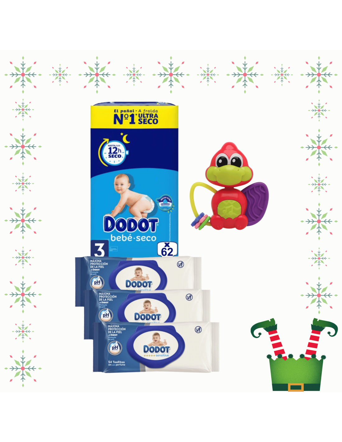 Incluye:- 1 paquete de pañales Dodot Sensitive Talla 3 (62 uds)