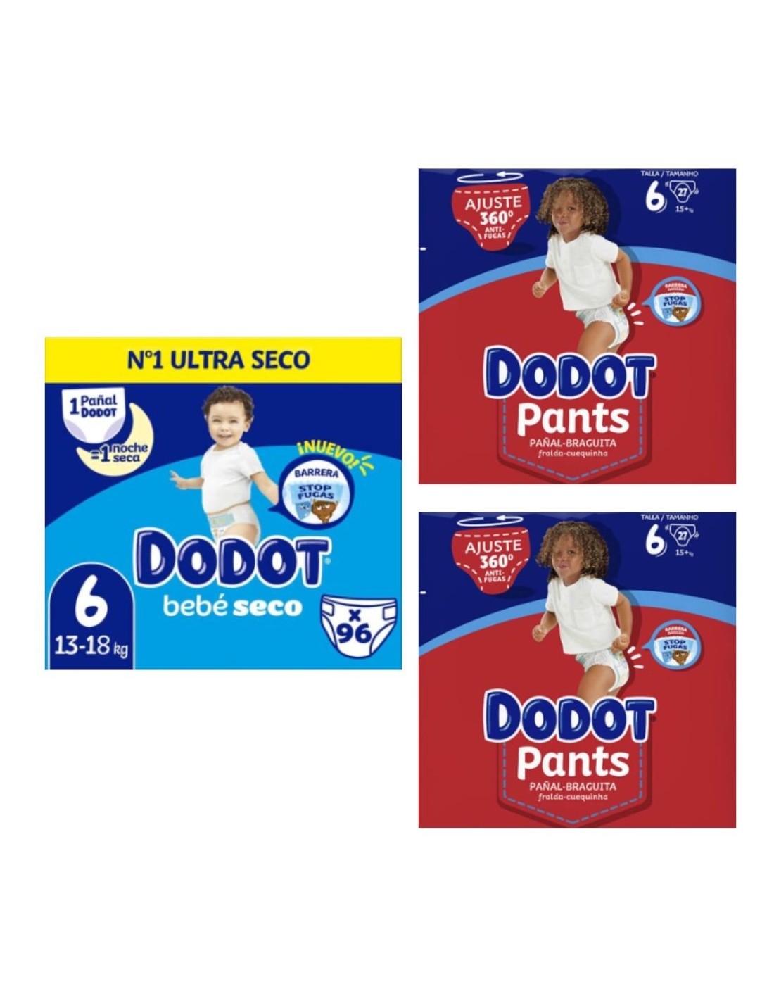 • 54 Dodot Pants Talla 6 (2 paquetes de 27 uds.), en formato braguita fácil de poner y quitar, perfectos para bebés que ya se mueven mucho o inician la transición al control de esfínteres.