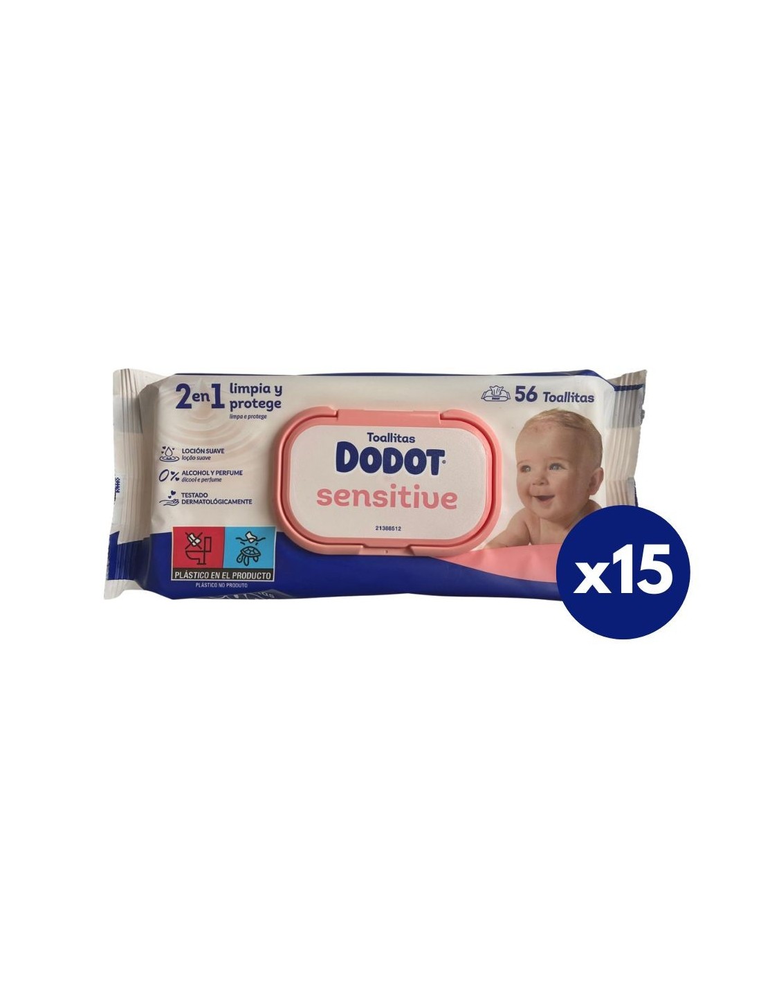 • 840 toallitas Sensitive: sin alcohol ni perfume, con loción calmante.