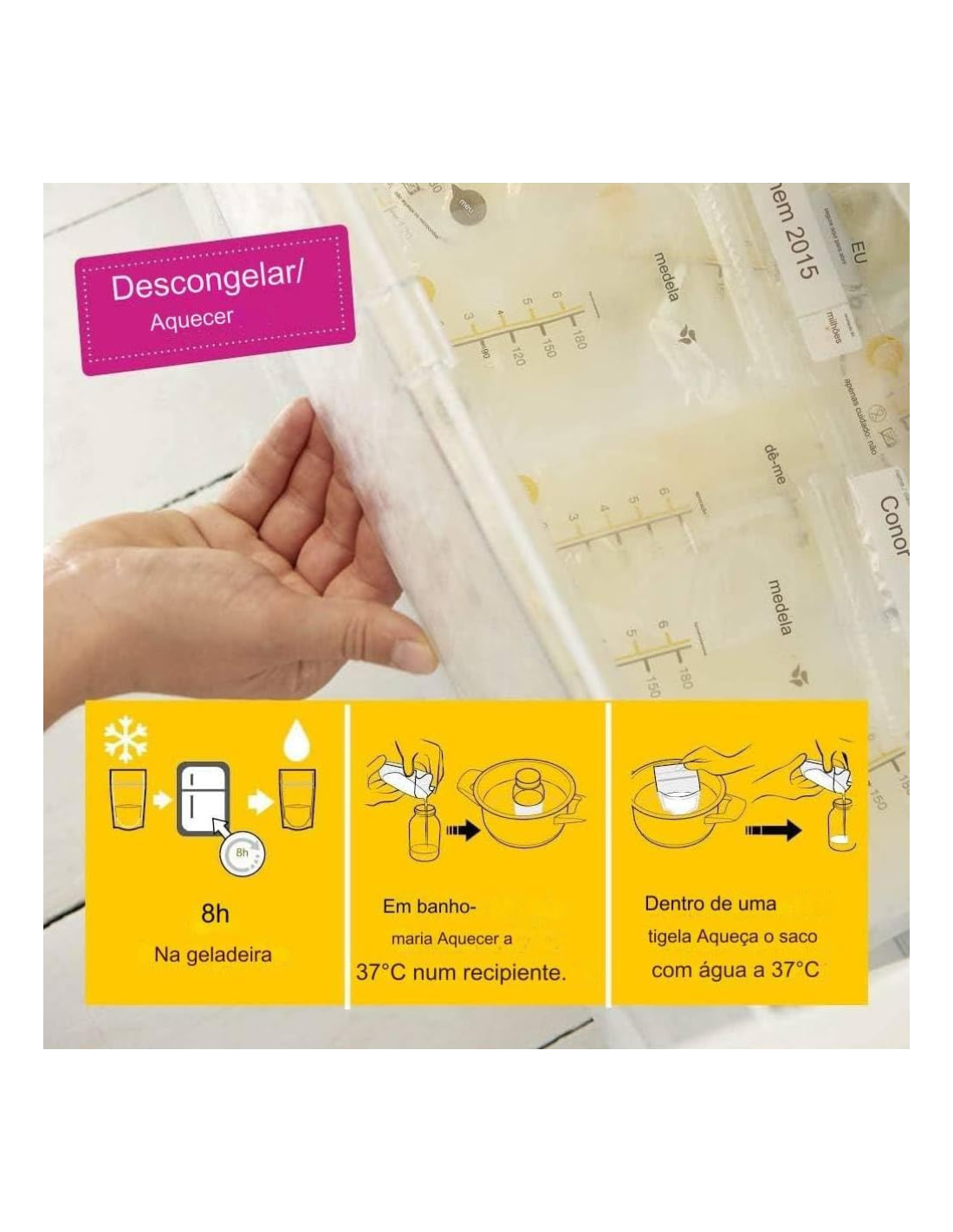 Las Bolsas de Almacenamiento de Leche Materna de Medela están diseñadas para mamás que buscan una opción segura y práctica para almacenar, transportar y congelar la leche materna. Estas bolsas preesterilizadas son ideales para un almacenamiento sin riesgos, manteniendo la frescura y seguridad de la leche. Con una capa de polietileno LDPE en el interior y exterior, estas bolsas son libres de Bisfenol-A (BPA), lo que garantiza que los nutrientes de la leche no se vean comprometidos.