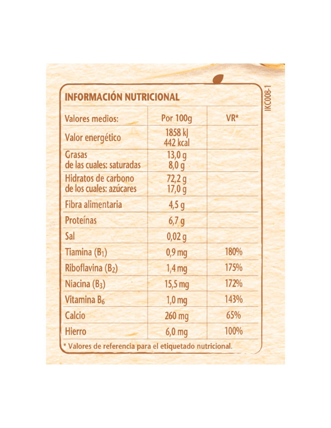 - Hidratos de carbono: 75 g (de los cuales azúcares 18 g)