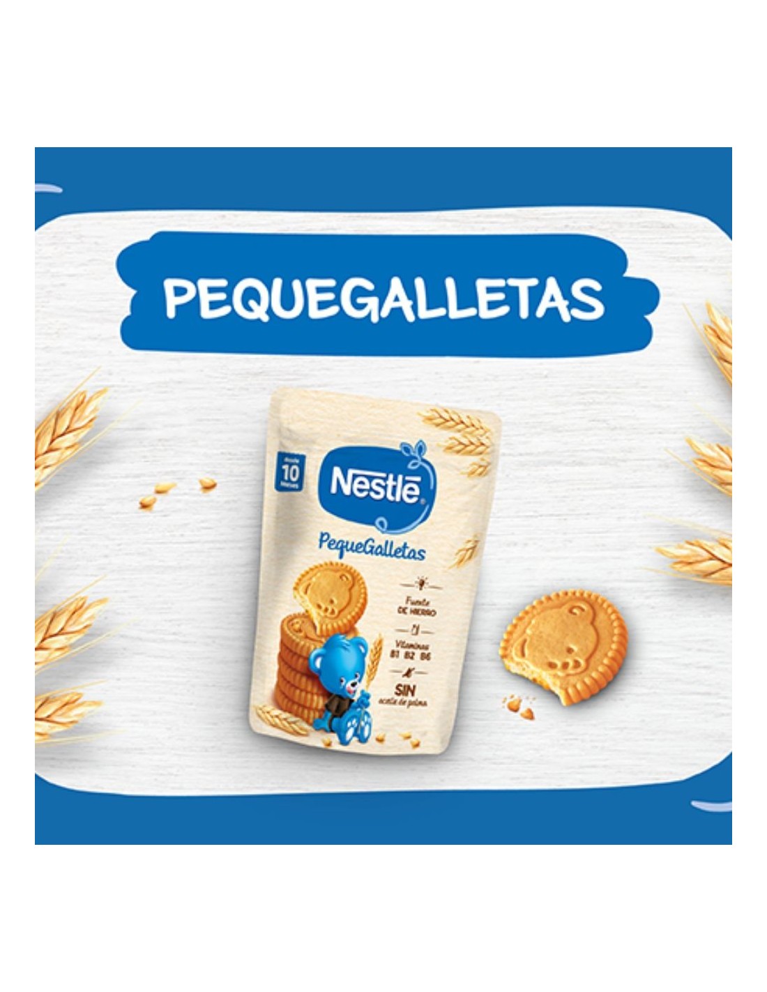 Su textura ligera y disolución rápida en la boca las hace ideales para que el bebé las mastique con facilidad, ayudando al desarrollo de sus habilidades orales y su coordinación mano-boca. Sin colorantes ni conservantes, y con un sabor suave y natural, las PequeGalletas Nestlé son perfectas como tentempié, merienda o complemento de la alimentación equilibrada del bebé.