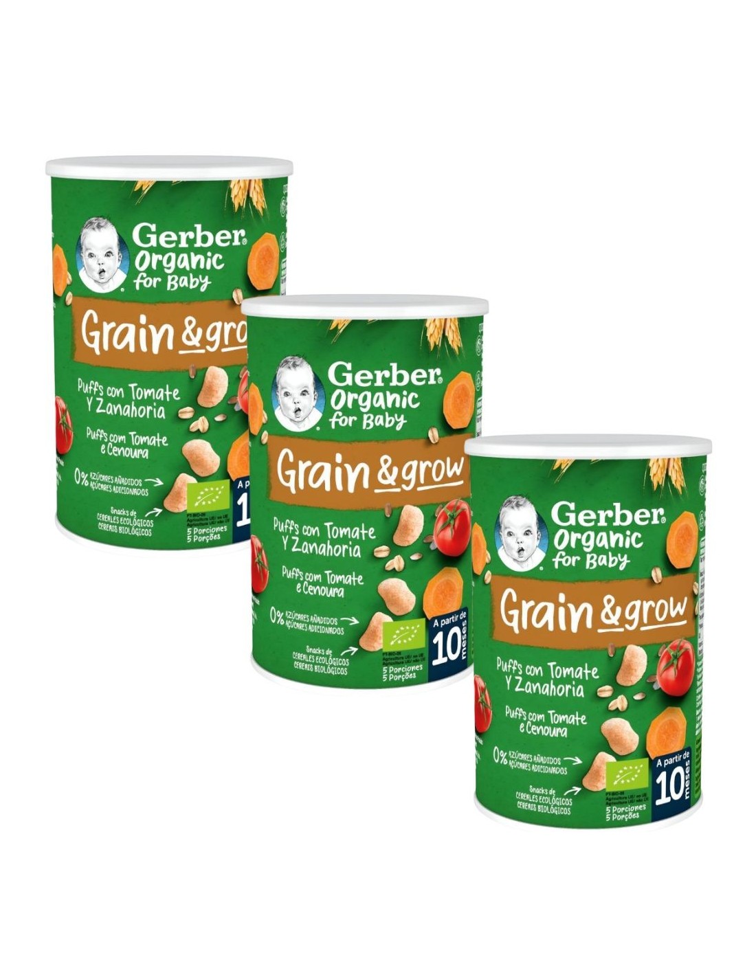 El Puff Snack Orgánico de Cereales con Tomate Gerber ofrece una forma divertida, segura y saludable de acompañar los primeros pasos del bebé en la alimentación sólida. A partir de los 8 meses, su textura ligera y aireada se deshace fácilmente en la boca, ayudando a desarrollar la coordinación mano-boca y los primeros mordisquitos.