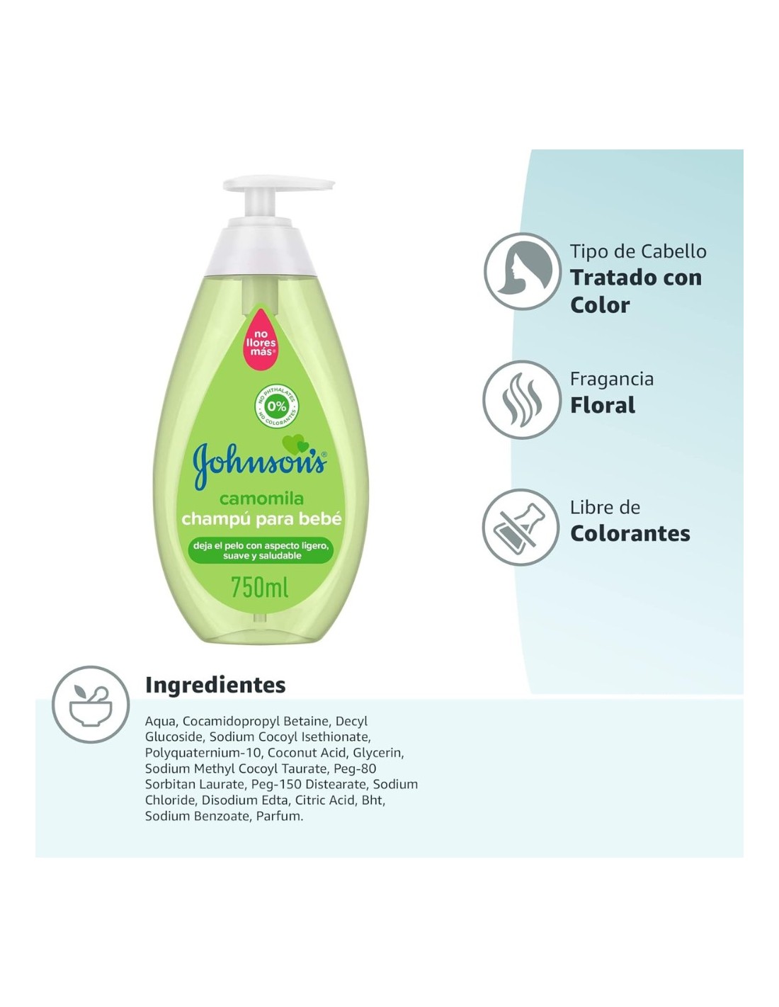 El formato de 750 ml es perfecto para el uso diario y proporciona una gran durabilidad, siendo una opción práctica y económica para la higiene del bebé y de toda la familia. Su textura ligera y su agradable fragancia suave dejan el cabello limpio, fresco y con un aroma delicado después de cada lavado.