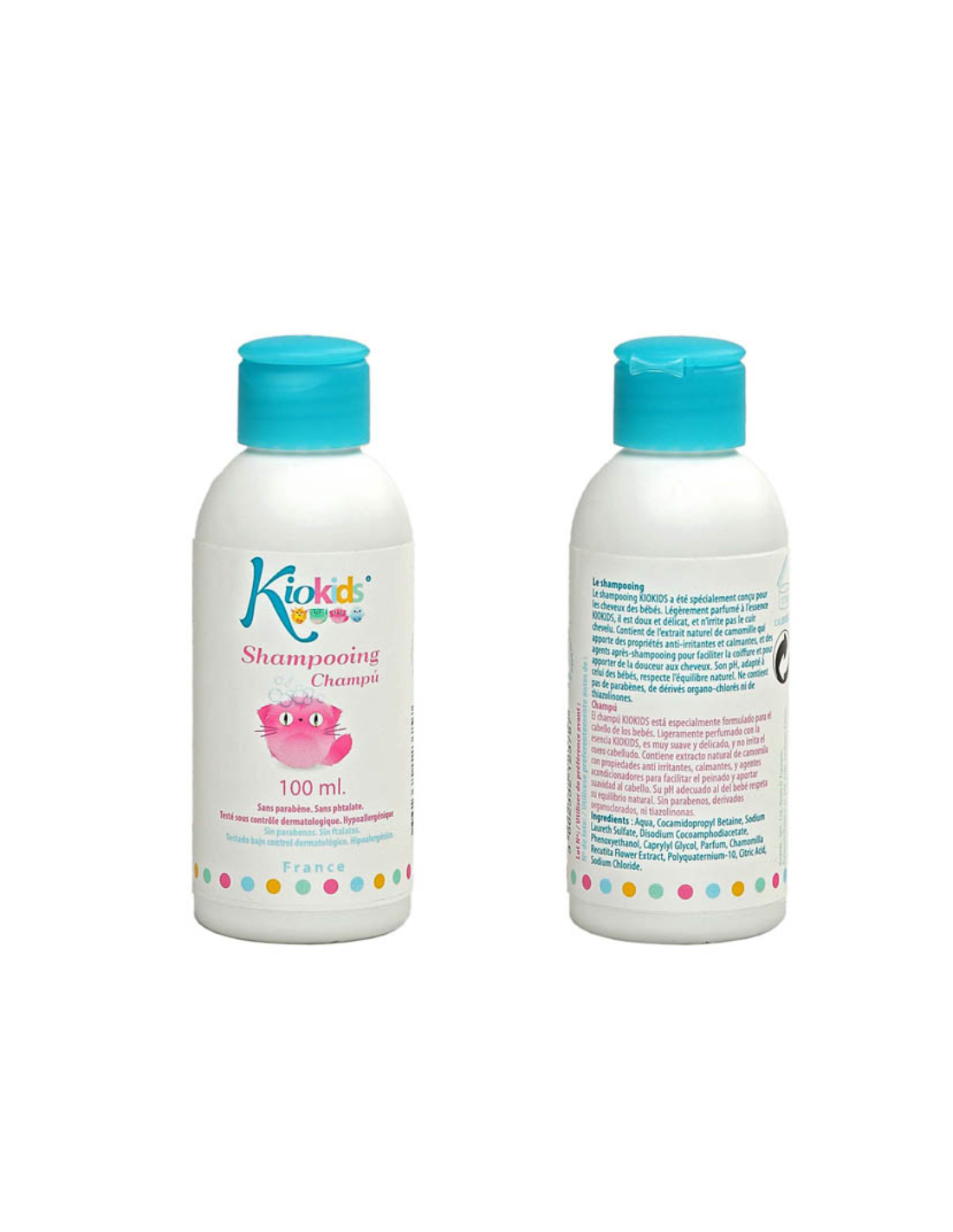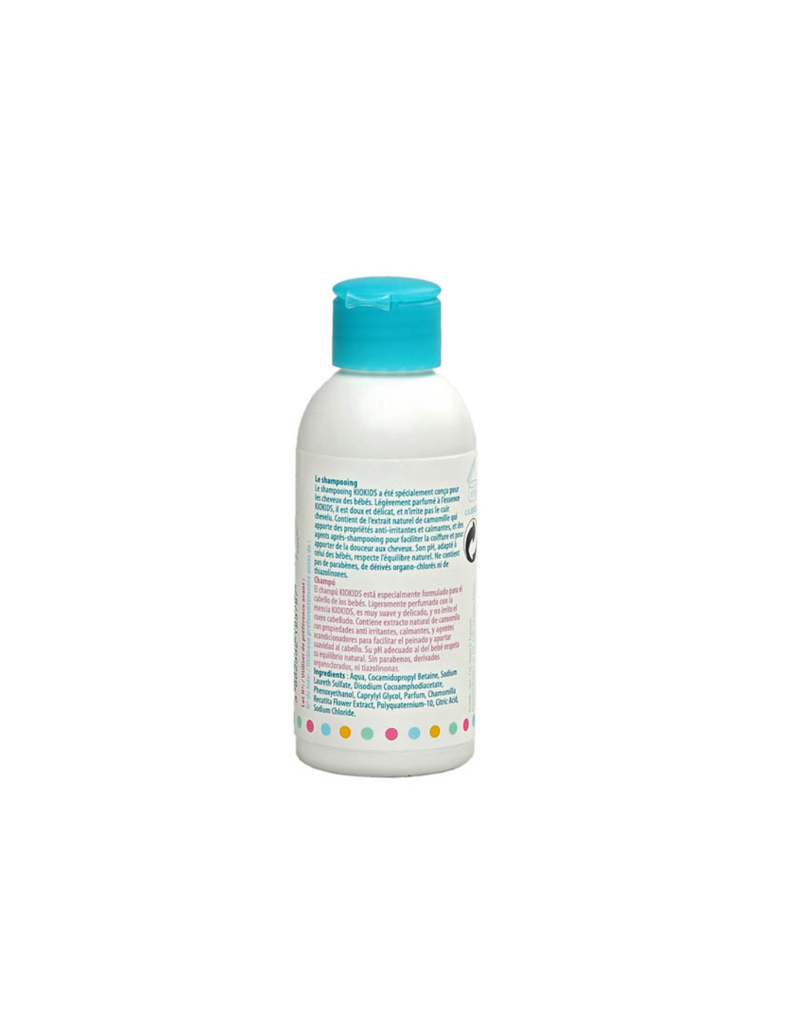 El Champú para bebés 100 ml Kiokids limpia con suavidad el cabello y el cuero cabelludo del bebé desde el primer día. Su fórmula suave sin lágrimas está especialmente desarrollada para minimizar el riesgo de irritaciones o alergias, respetando el equilibrio natural del pH de la piel del bebé.