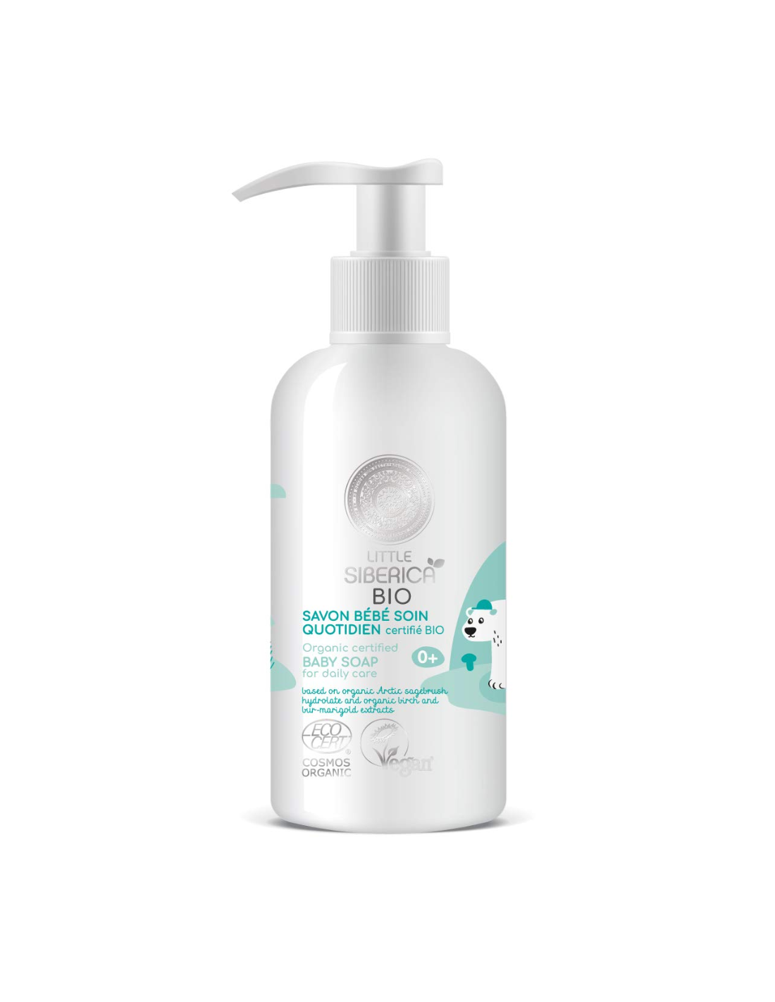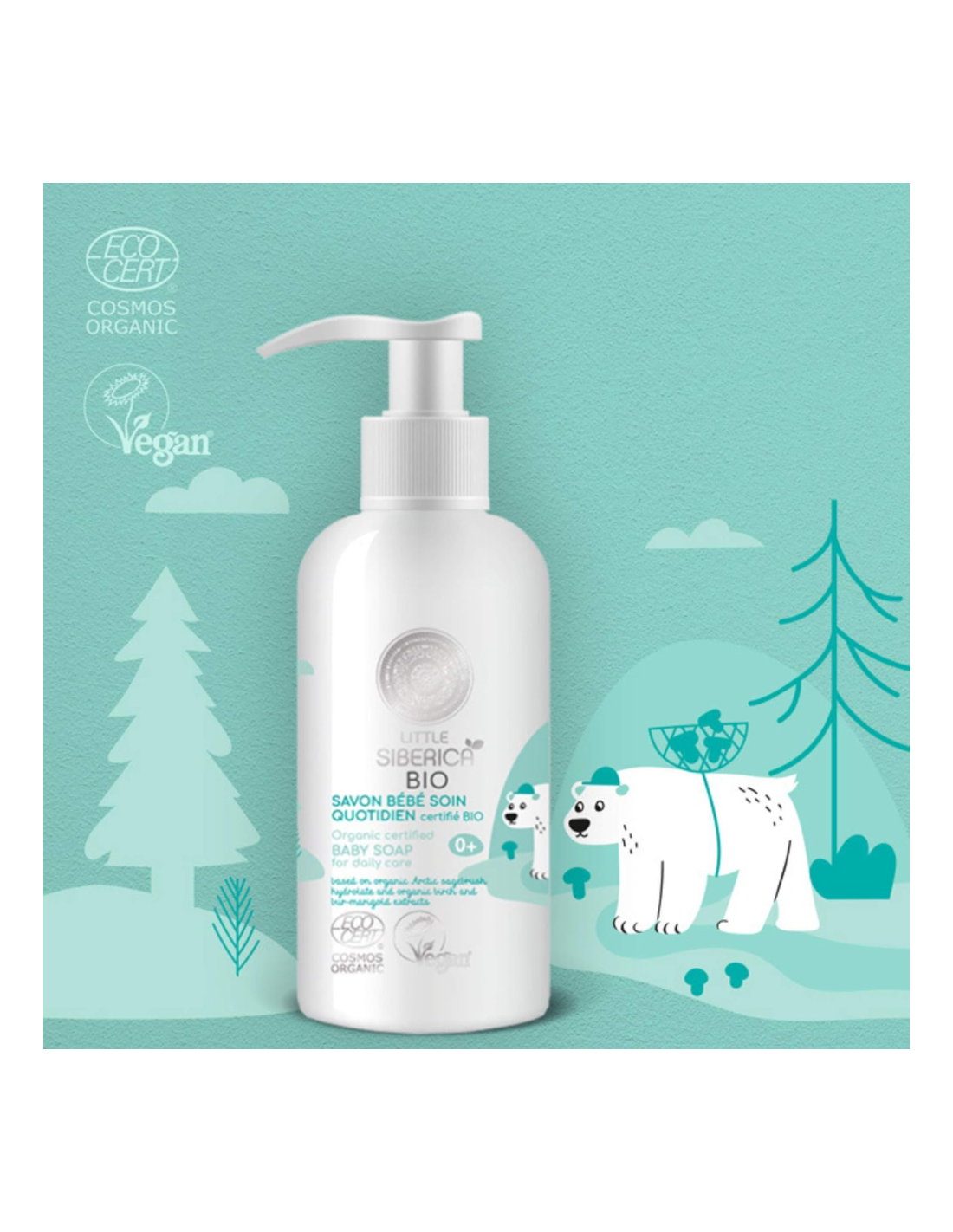 Este jabón forma parte de Little Siberica, la línea infantil de Natura Siberica , diseñado con ingredientes naturales certificados para el cuidado más respetuoso de la piel del bebé. Su fórmula está basada en hidrolatos naturales y extractos de más de 30 plantas y flores orgánicas siberianas, seleccionadas por sus propiedades calmantes, suavizantes y protectores.