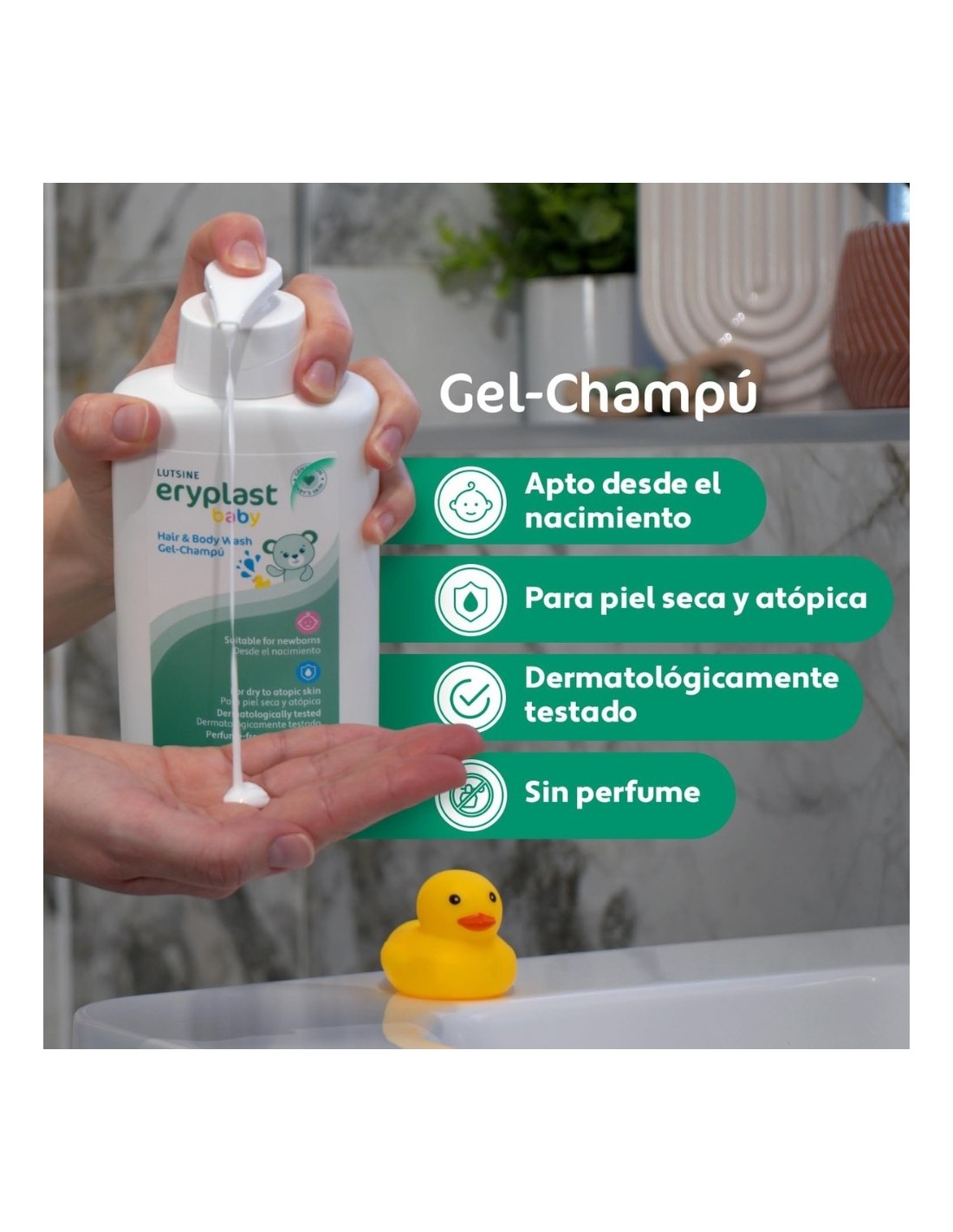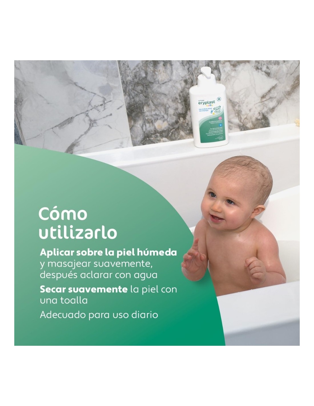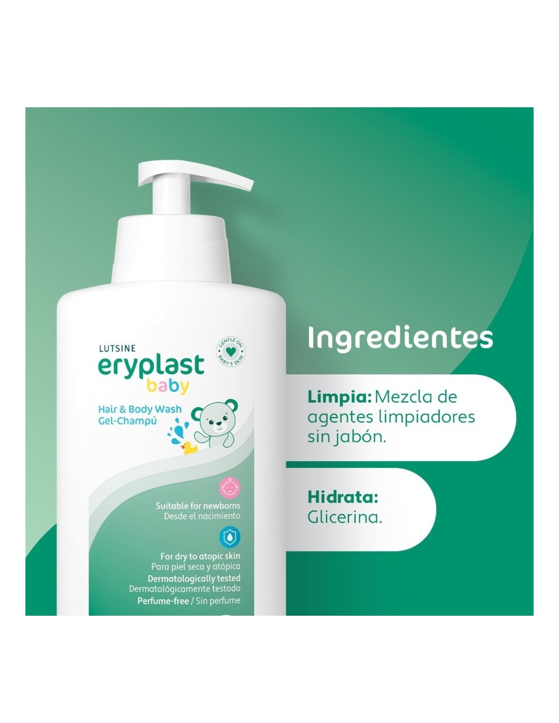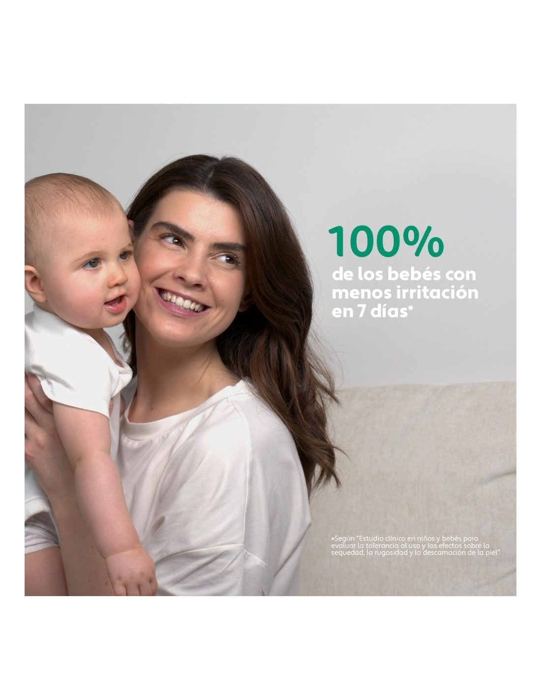 Este gel-champú destaca por su fórmula sin jabón, elaborada con una mezcla de agentes limpiadores suaves que eliminan impurezas sin alterar la barrera natural de la piel. Contiene más de un 50% de ingredientes emolientes, lo que lo convierte en un aliado ideal para las pieles que requieren hidratación constante y protección extra. Su contenido en glicerina vegetal aporta una hidratación profunda y duradera, ayudando a aliviar la tirantez y el picor propios de la piel seca o atópica. Está dermatológicamente testado, no pica en los ojos, y es sin perfume, por lo que minimiza el riesgo de alergias o reacciones adversas. Su textura suave permite un uso diario, respetando la piel desde el primer baño. Los estudios clínicos respaldan su eficacia: en una semana se reduce visiblemente la irritación en el 100% de los bebés.