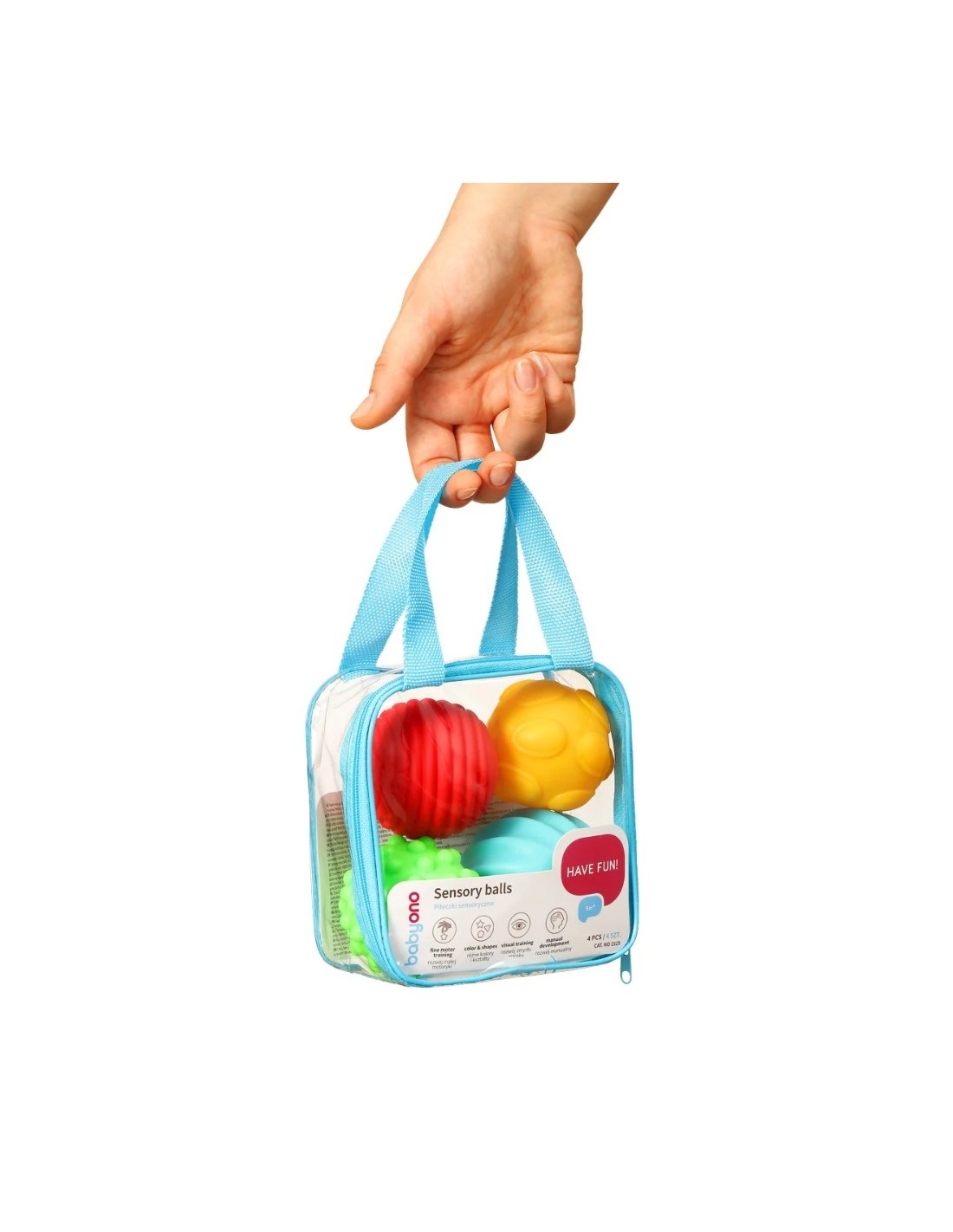 Las pelotas sensoriales BabyOno pack de 4 unidades son el complemento perfecto para estimular los sentidos del bebé. Cada pelota tiene una forma, color y textura diferentes que invitan al niño a explorar, apretar, rodar y lanzar, favoreciendo así el desarrollo de la motricidad fina, la coordinación mano-ojo y la estimulación táctil. Además, gracias a su material flexible, son fáciles de sujetar incluso para las manos más pequeñas.