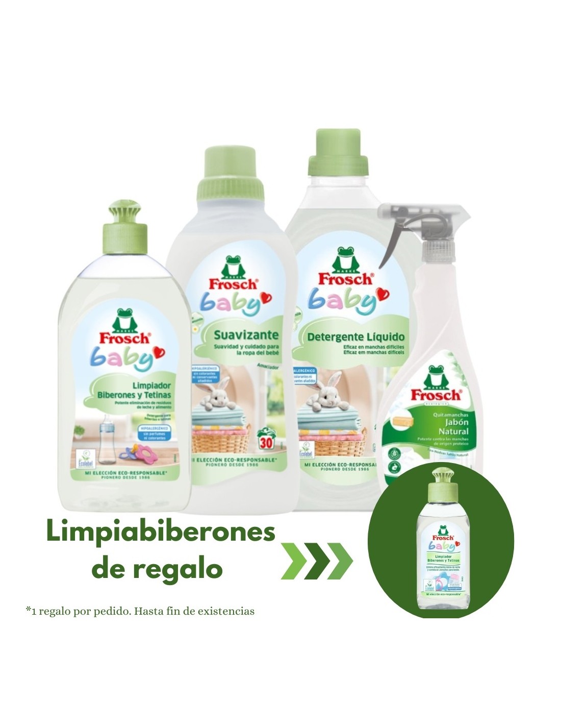 El Pack Frosch Bebé es la solución ideal para familias que buscan una limpieza eficaz, respetuosa con la piel del bebé y con el medio ambiente. Este pack incluye todo lo necesario para cuidar la ropa y los utensilios del bebé con fórmulas dermatológicamente testadas, sin perfumes agresivos ni alérgenos, perfectas para pieles sensibles.