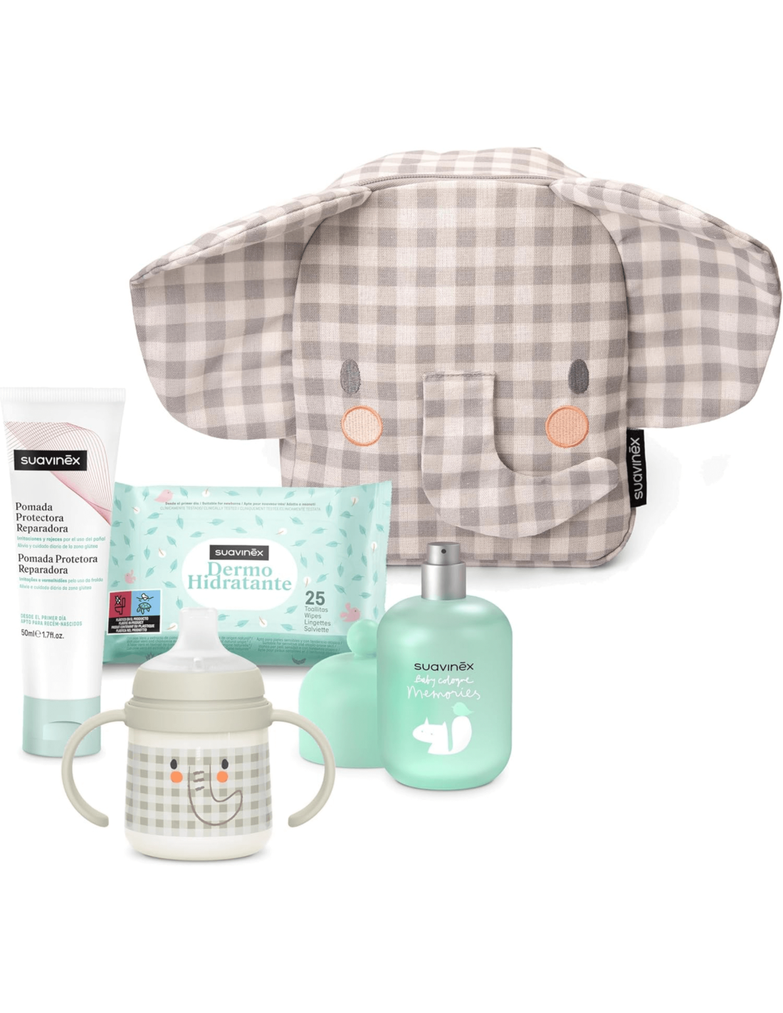 La Mochila Guardería Suavinex Elefante Gris es un regalo práctico y elegante para recién nacidos y familias. Se presenta como una canastilla completa que combina productos de cosmética, higiene y accesorios útiles para el día a día del bebé, todo en una mochila infantil de diseño tierno y funcional. Este set incluye: Baby Cologne Memories 100 ml, crema para el pañal 50 ml, pack de 25 toallitas dermohidratantes y una taza de aprendizaje. Todo ello en una mochila reutilizable con diseño de elefante gris, perfecta para la guardería o las primeras salidas.