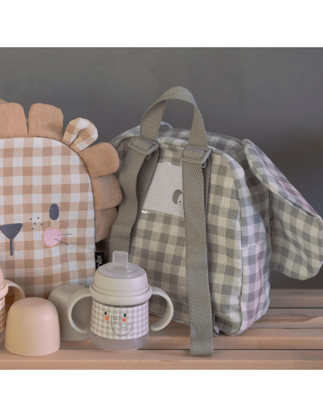 - Mochila infantil reutilizable con diseño de elefante gris.