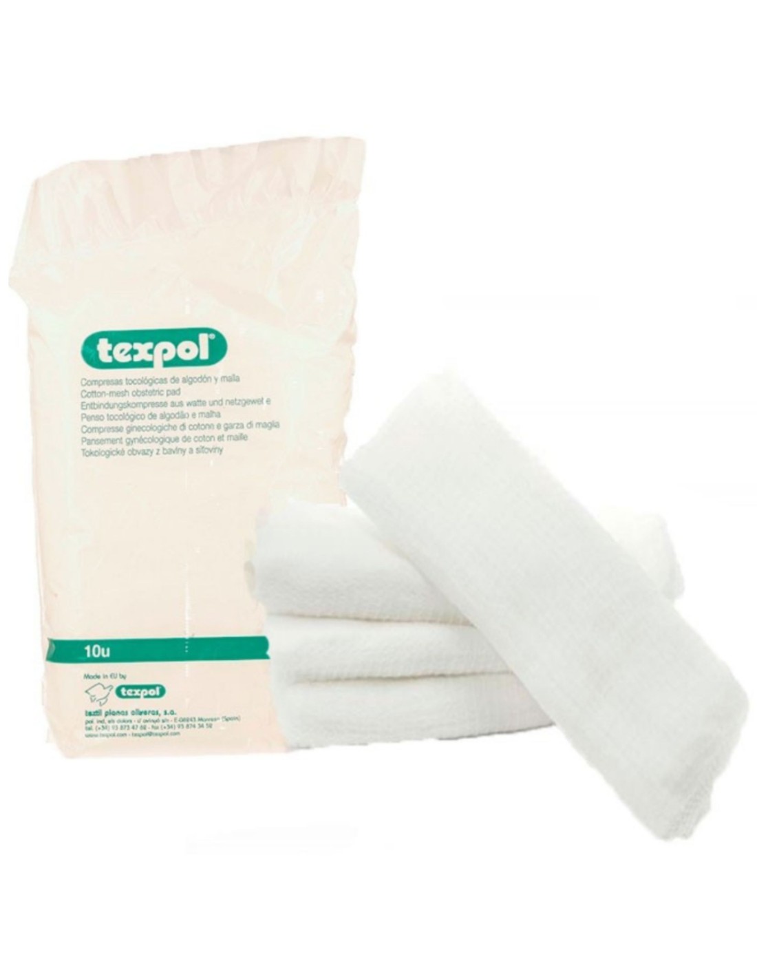 El pack incluye 10 compresas tocológicas de algodón y malla.