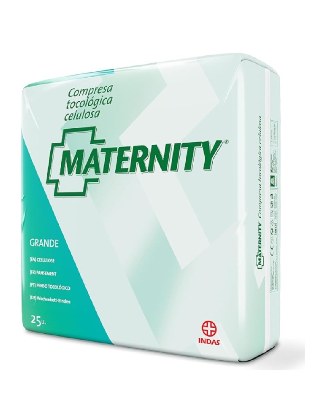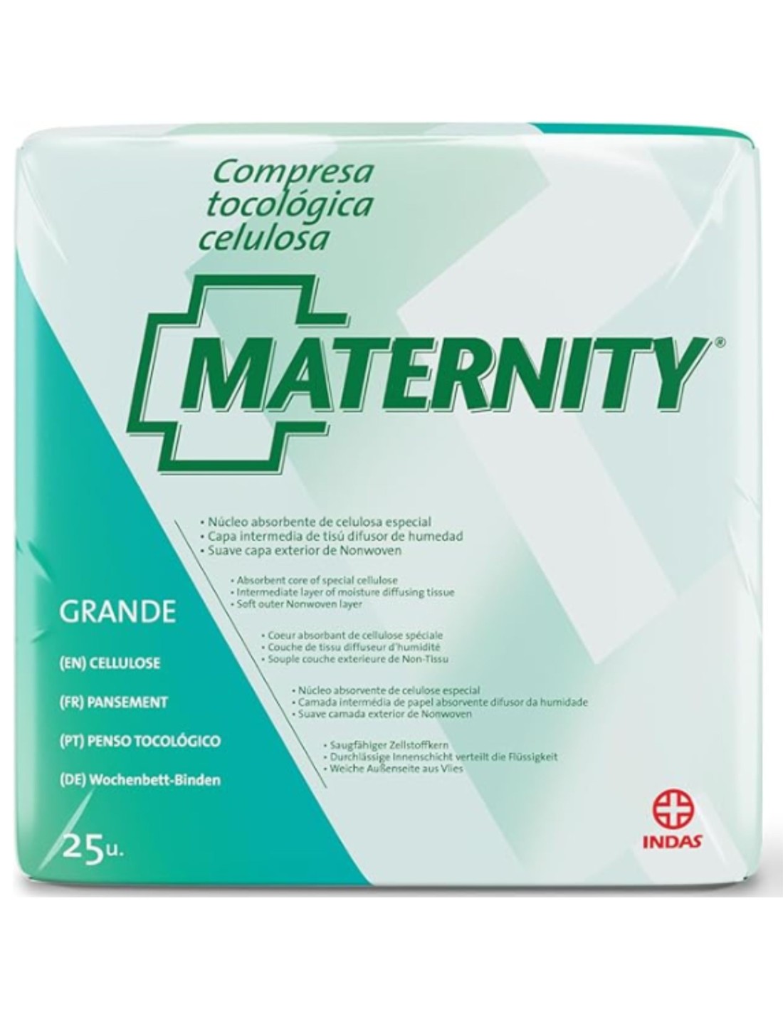 El paquete contiene 25 compresas tocológicas de celulosa.