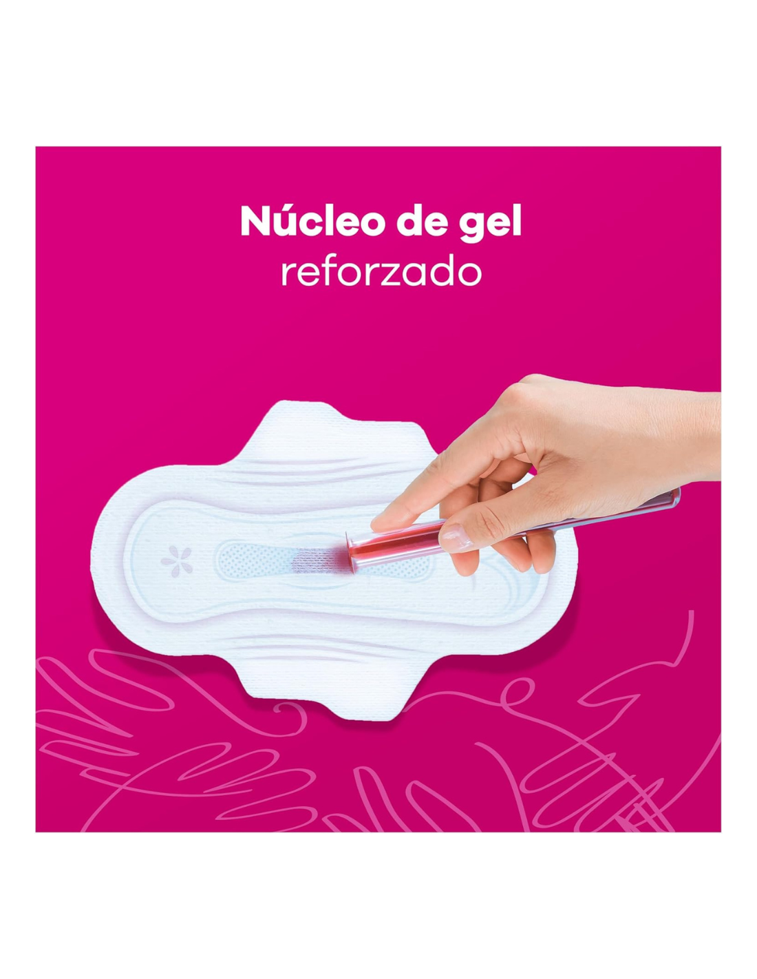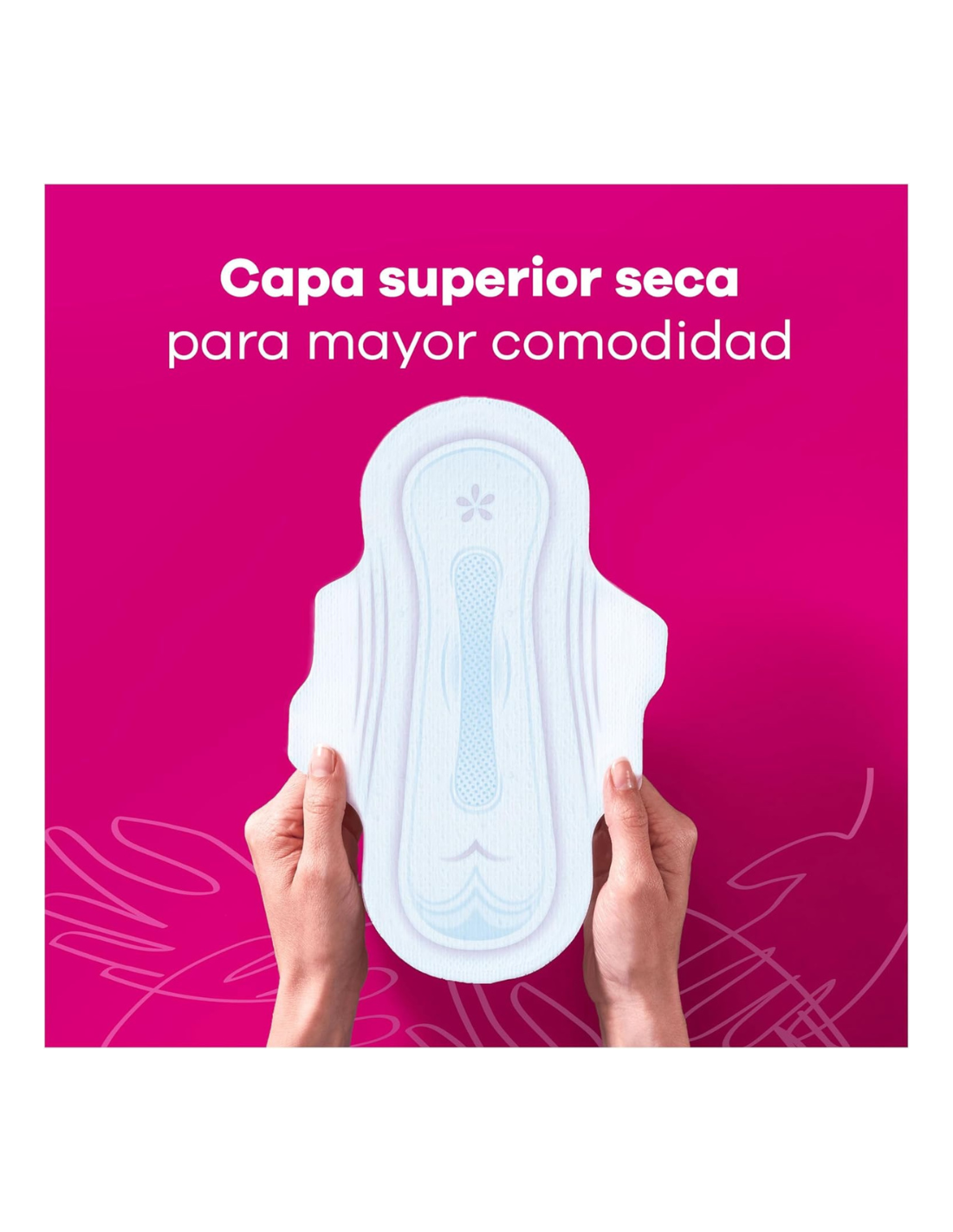 - Comodidad en movimiento: El diseño con alas asegura que la compresa se mantenga en su lugar.