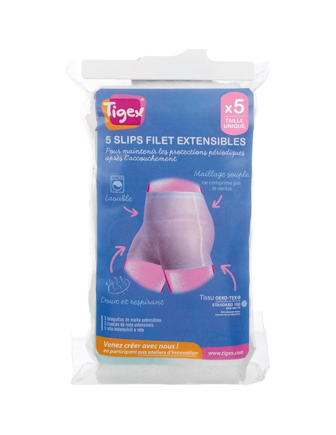 Las Bragas de Malla Extensible Tigex están especialmente diseñadas para ofrecer máxima comodidad e higiene durante el posparto, tanto en hospital como en casa. Gracias a su tejido de malla elástica, se adaptan perfectamente al cuerpo sin oprimir, permitiendo una correcta sujeción de compresas posparto o apósitos.