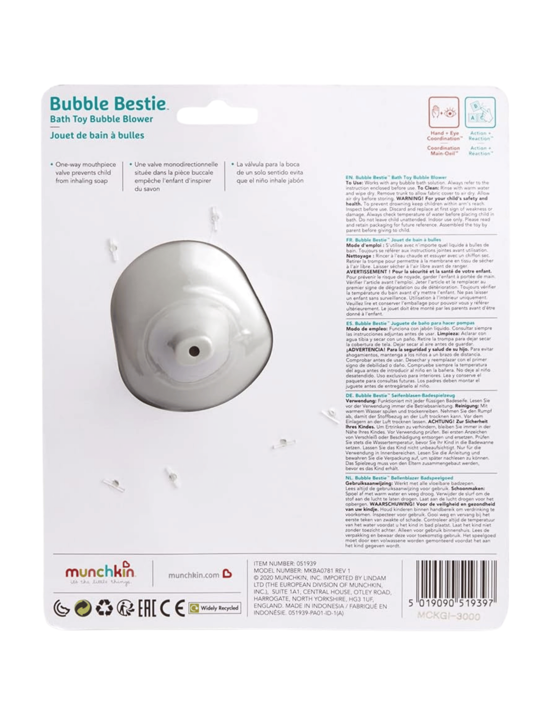 El Elefante Soplador de Burbujas Munchkin convierte el baño y el juego diario en una auténtica fiesta de burbujas. Con su diseño de elefante adorable y su funcionamiento automático, solo tienes que añadir tu solución de burbujas favorita y pulsar el botón para que comience a soplar decenas de burbujas por minuto.