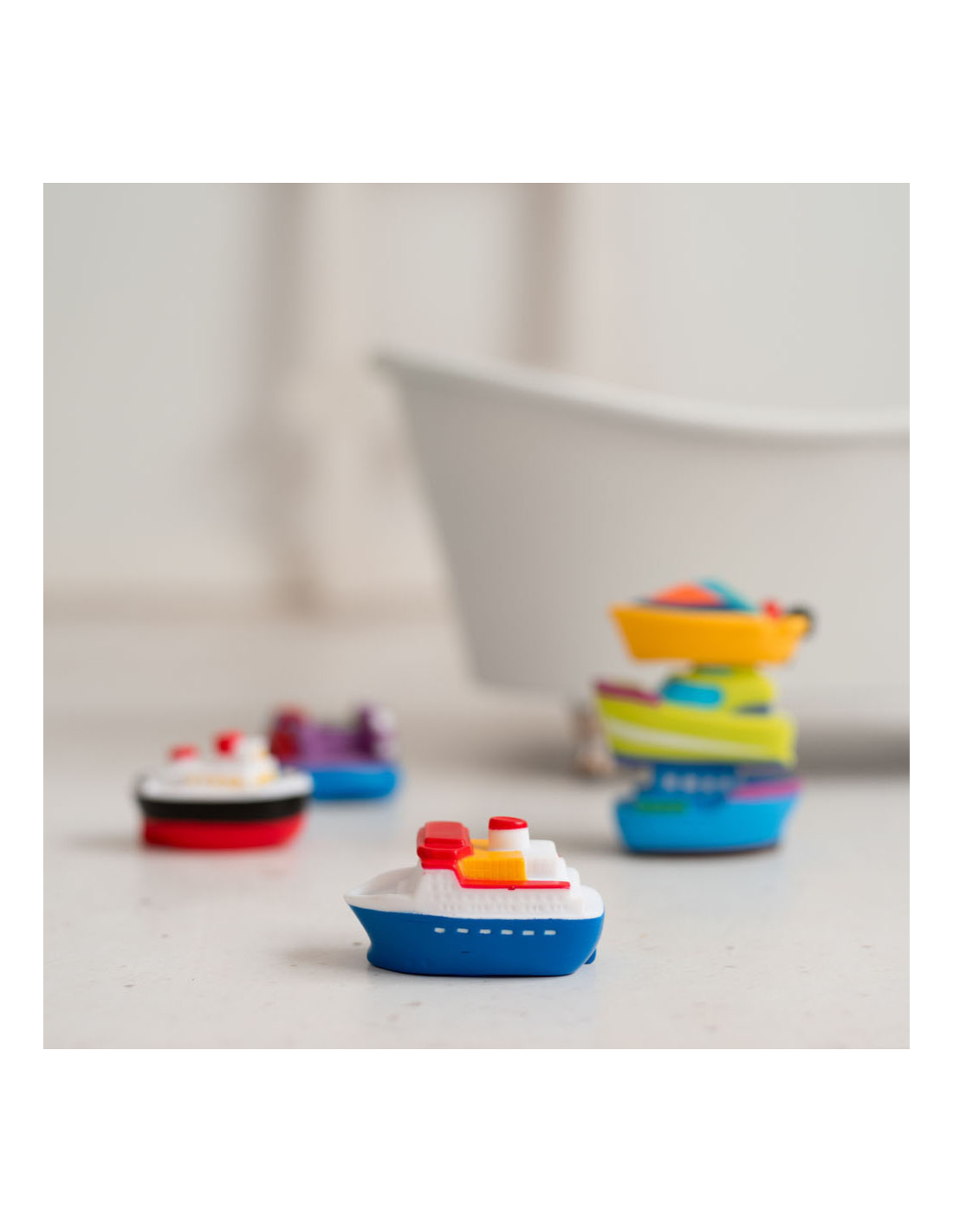 - Incluye 6 barquitos de colores flotantes.