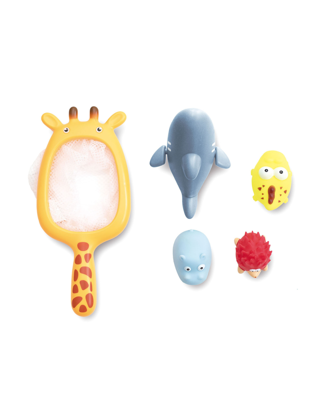 Este set incluye una red de pesca y cuatro adorables animalitos marinos que flotan en el agua, permitiendo que el bebé se divierta atrapándolos con la red mientras desarrolla sus habilidades motoras. Además, la ballena tiene un mecanismo giratorio que permite que nade por el agua , lo que hará que la experiencia de juego sea aún más emocionante. Fabricado con materiales 100% seguros, libres de BPA y no tóxicos , este juguete garantiza la máxima seguridad para los más pequeños. Su diseño ergonómico facilita el agarre de los animales y la red, promoviendo la coordinación y la motricidad fina.