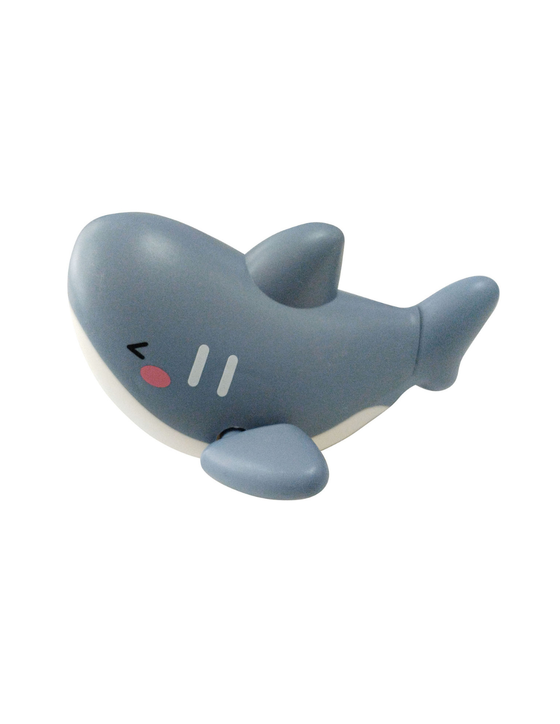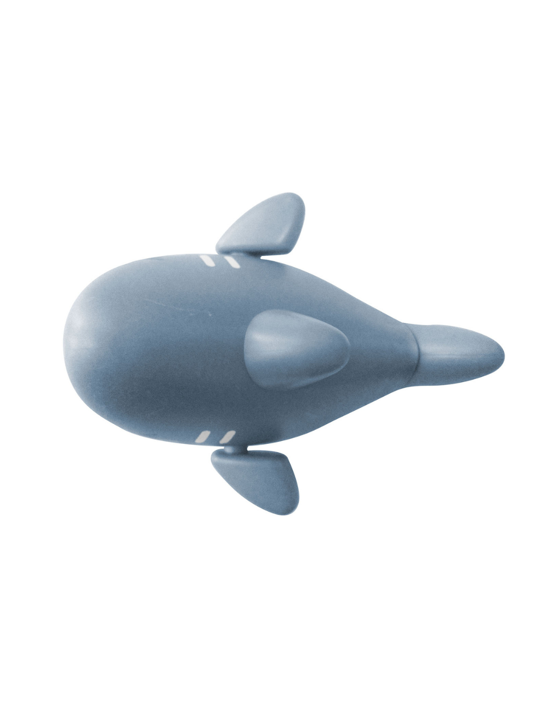 La ballena tiene un mecanismo de cuerda que, al girarlo, le permite nadar por el agua, haciendo el juego más dinámico y entretenido.
