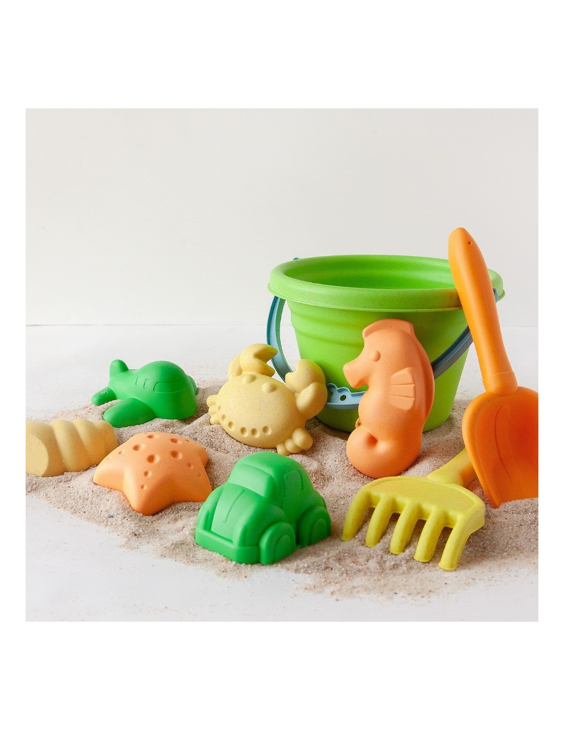 El pack está compuesto por un cubo, pala, rastrillo y varios moldes de arena hasta un total de 8 piezas. - ¿Solo sirve para la playa?