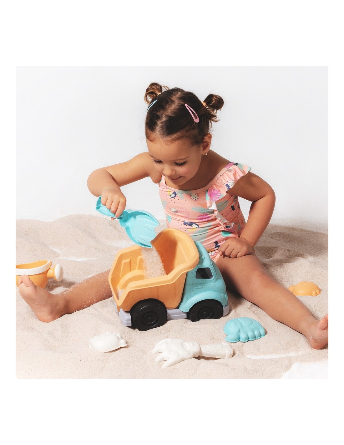 El set contiene el camión de playa, un cubo, una pala y moldes de arena (según modelo). - ¿Se puede usar solo en la playa?