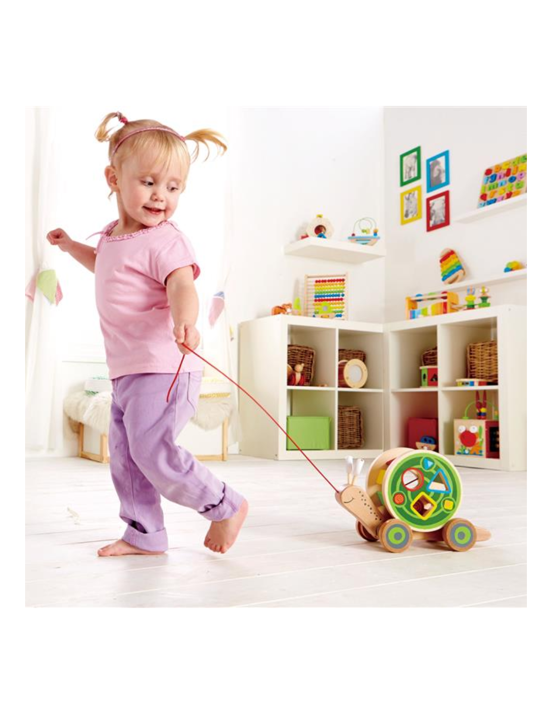 Este simpático caracol de juguete no solo es un amigo para arrastrar , sino también una herramienta perfecta para estimular el aprendizaje temprano de los más pequeños. Su concha cargada de bloques de vivos colores y diferentes formas permite a los niños descubrir y jugar a quitarle peso , fomentando la interacción al sacar el clasificador de formas . Con un simple movimiento, el caracol queda listo para rodar libre , animando a los pequeños a guiarlo mientras exploran colores y formas . Este juguete ofrece dos experiencias únicas en una: arrastrar y clasificar , ayudando a los niños a mejorar su motricidad fina , coordinación ojo-mano y reconocimiento de colores y formas en cada sesión de juego.