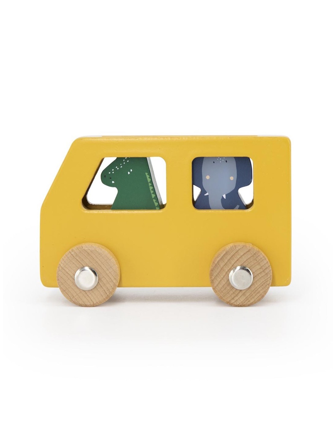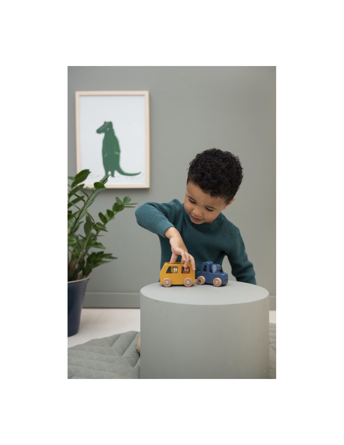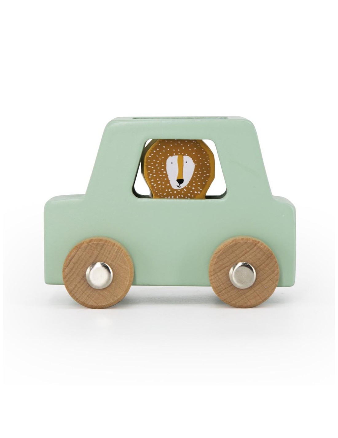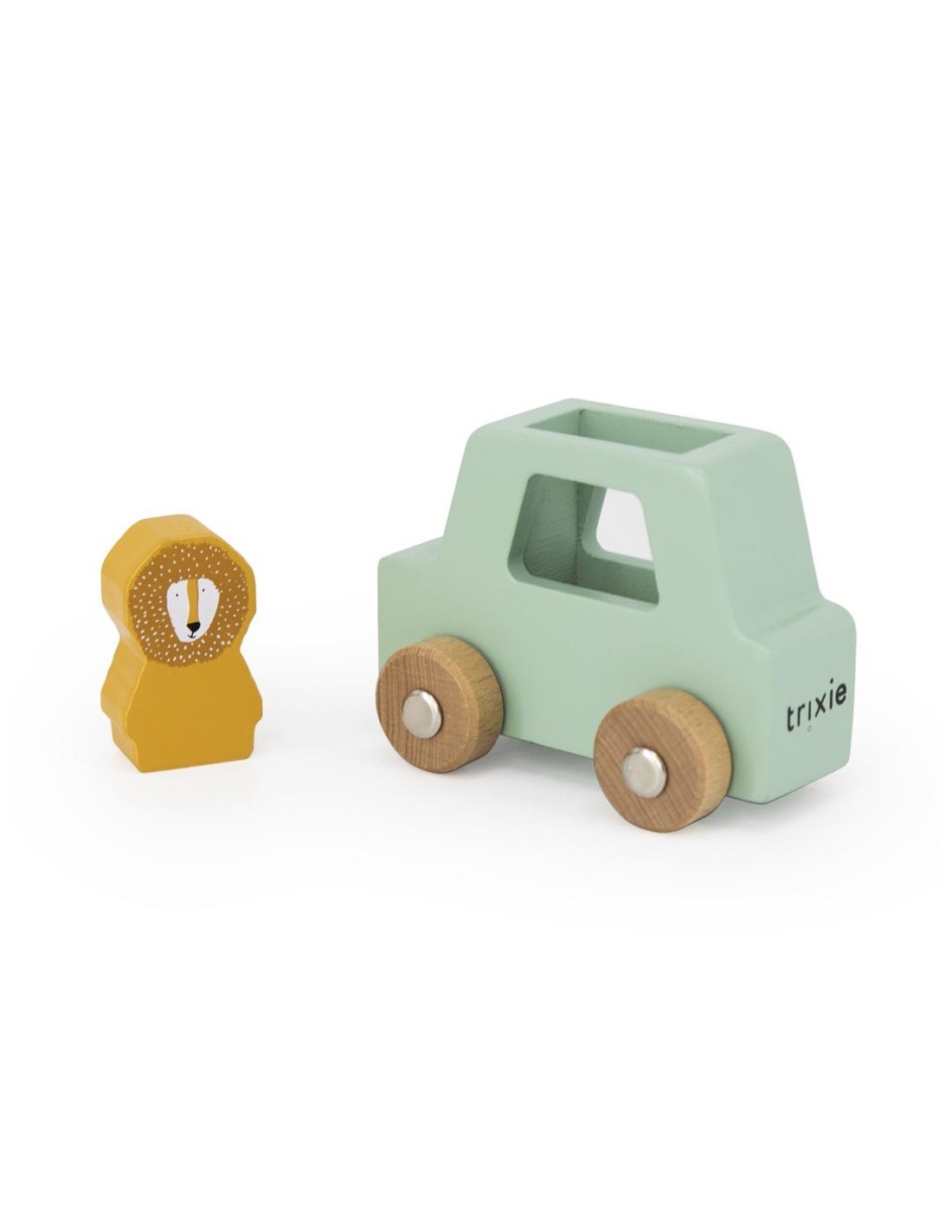 Incluye varios vehículos de madera con los animales más queridos de Trixie —como el león, el elefante, el cocodrilo y el gato—, todos diseñados con colores suaves, formas redondeadas y ruedas de fácil movimiento. Fabricados con madera natural FSC y pinturas ecológicas al agua, estos coches son resistentes, sostenibles y completamente seguros para los más pequeños.