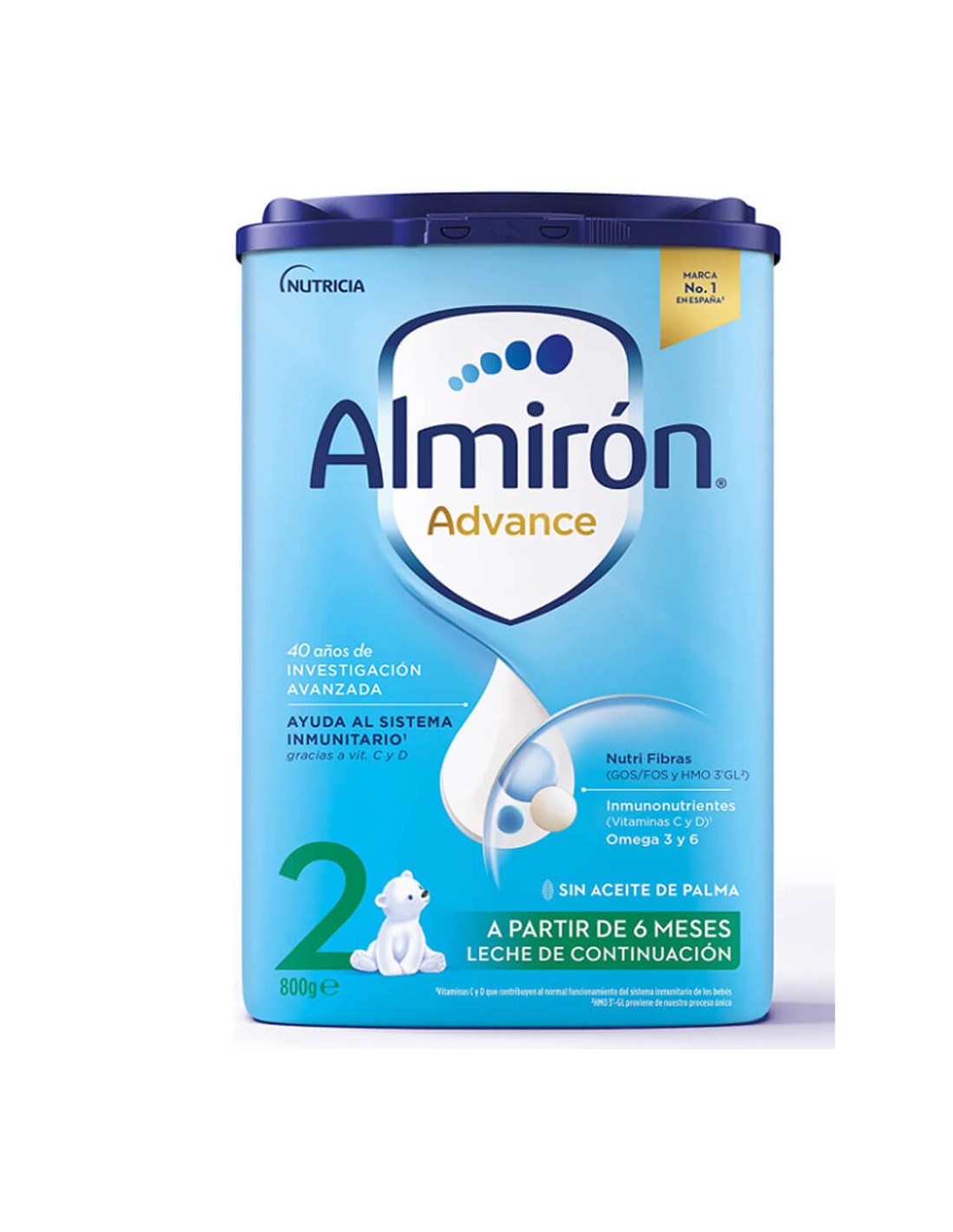Gracias a más de 50 años de investigación del Instituto de Nutrición Infantil Almirón, esta fórmula se inspira en los componentes de la leche materna, adaptando sus proporciones a las necesidades del bebé en crecimiento.