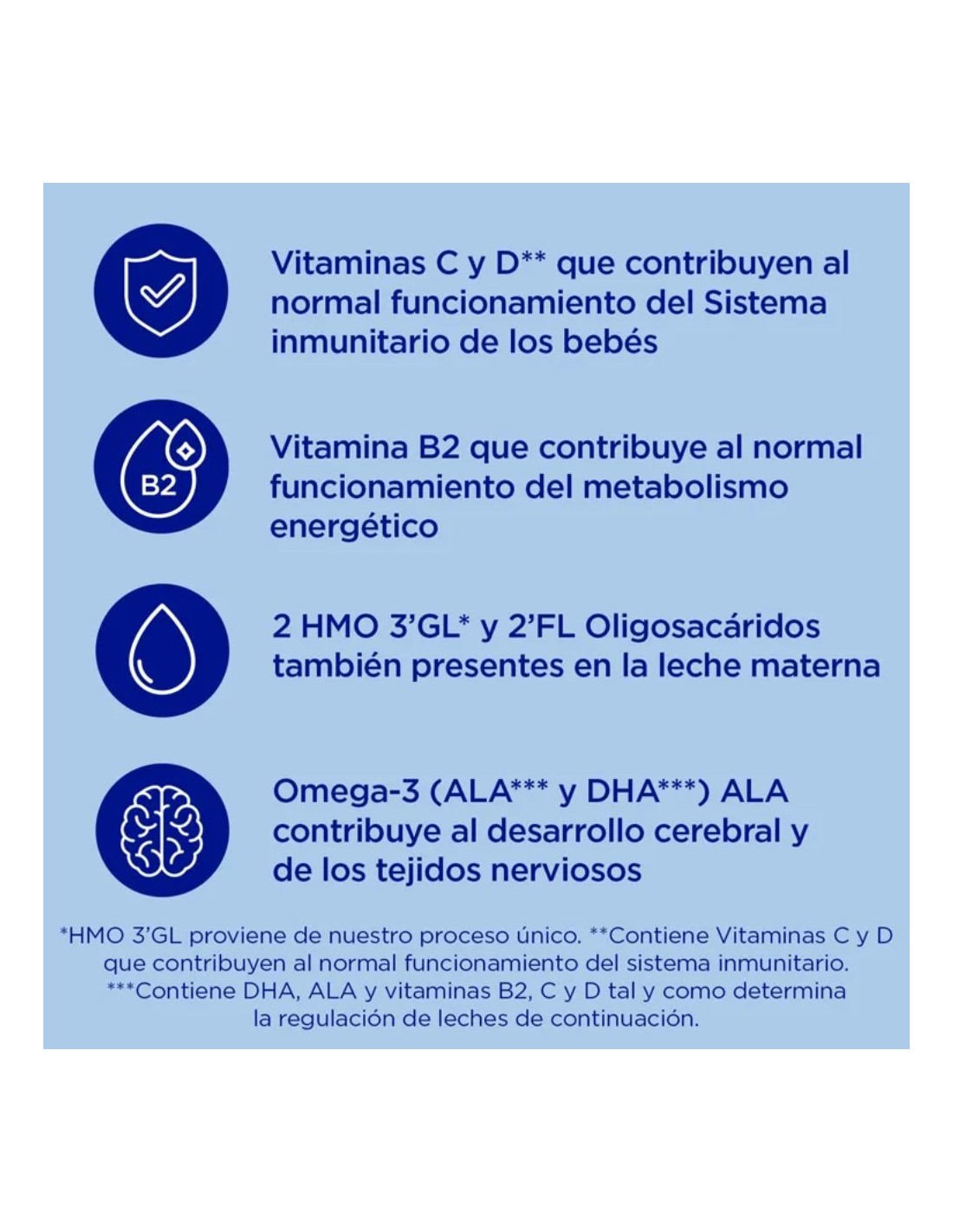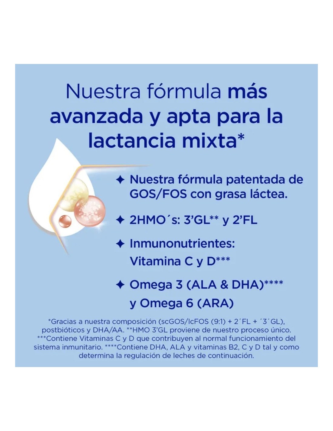 Fórmula premium con HMO 2’-FL y postbióticos naturales.