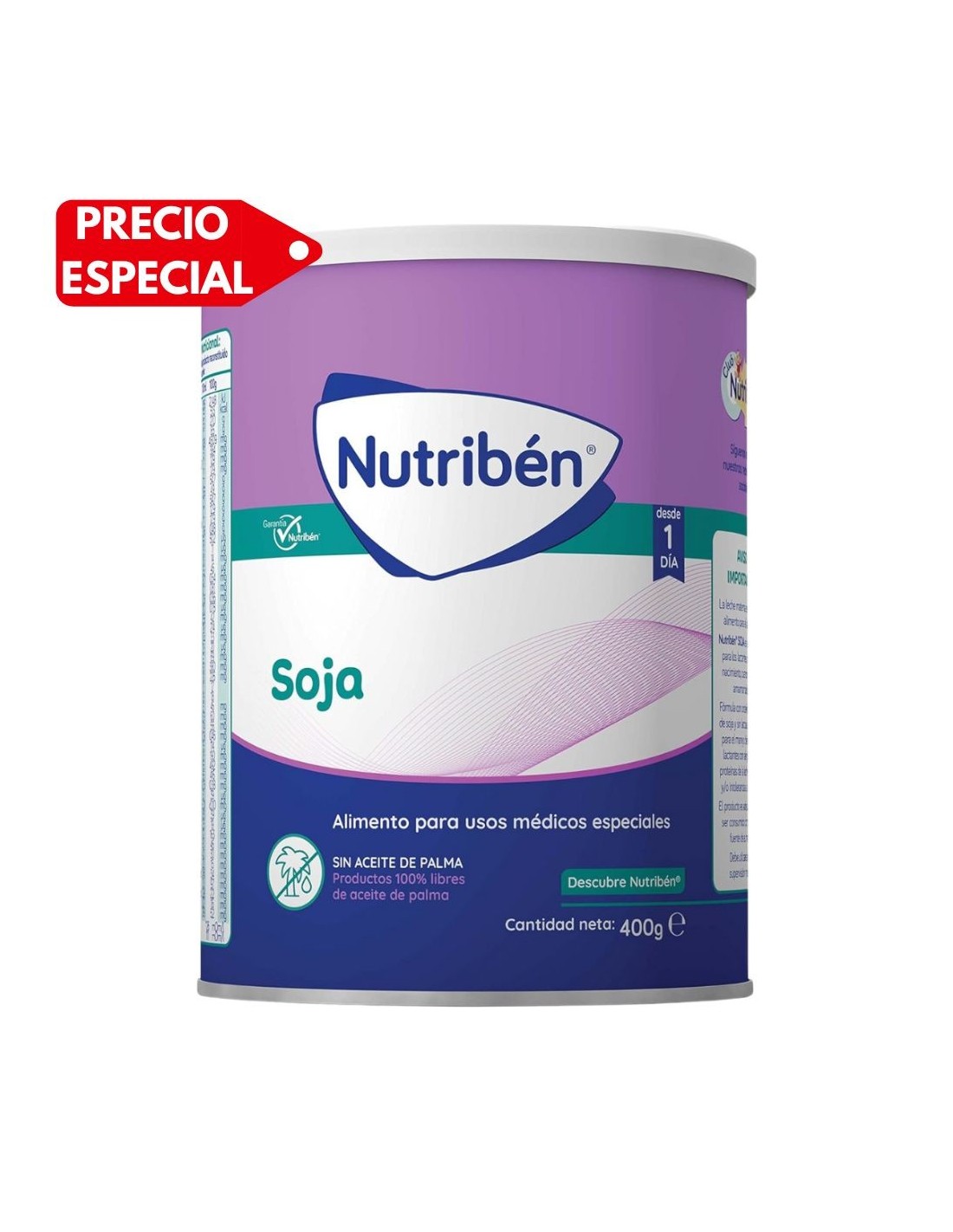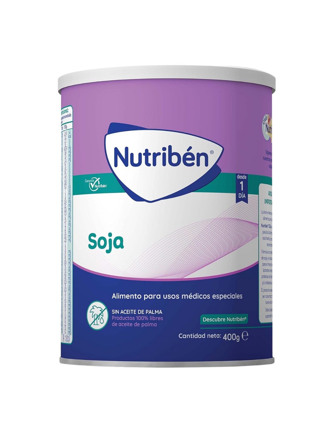 La Fórmula de Soja Nutribén +0M está especialmente diseñada para cubrir las necesidades nutricionales del lactante desde su nacimiento cuando no es posible la lactancia materna o se requiere una alimentación sin lactosa ni proteínas de leche de vaca.