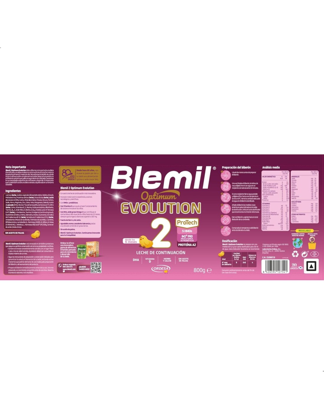 Blemil 2 Optimum Evolution cumple rigurosamente con el Reglamento (UE) 2025/40, ofreciendo información clara, completa y accesible sobre su composición, modo de preparación y uso seguro.