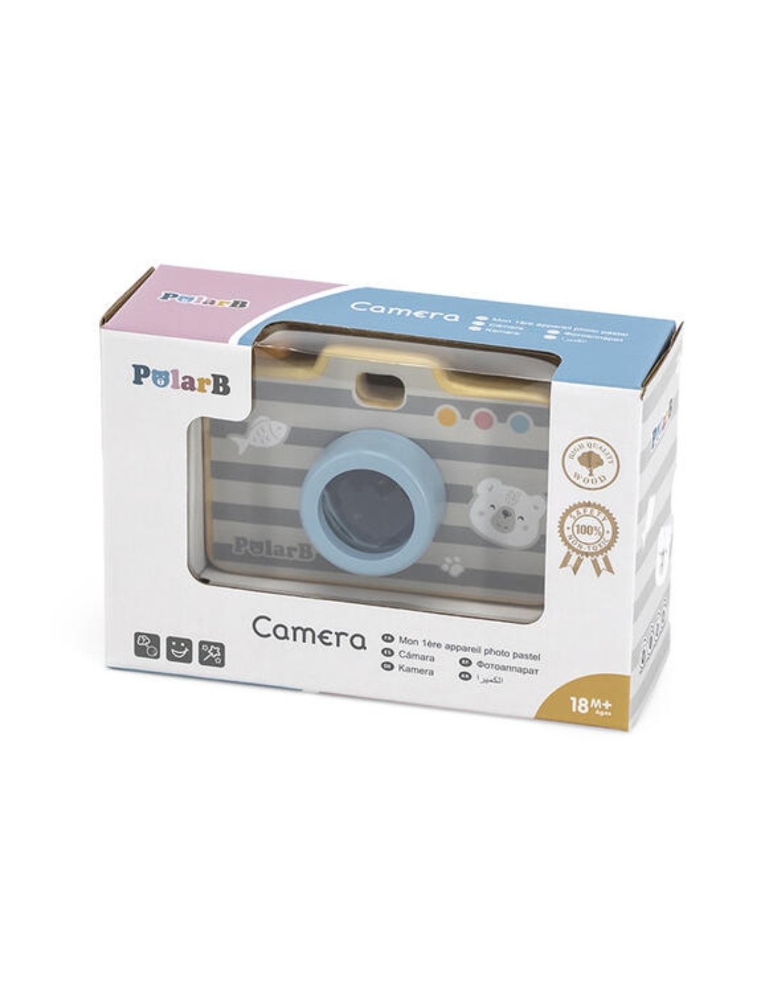 La cámara de madera +18M de PolarB es un juguete de imitación ideal para pequeños exploradores. Con un diseño realista en tonos suaves, incluye un visor, un botón móvil y un cordón para colgar, lo que la convierte en el accesorio perfecto para juegos de simulación. Ayuda a los niños a desarrollar la imaginación, la motricidad fina y el juego simbólico, imitando a los adultos mientras "hacen fotos".