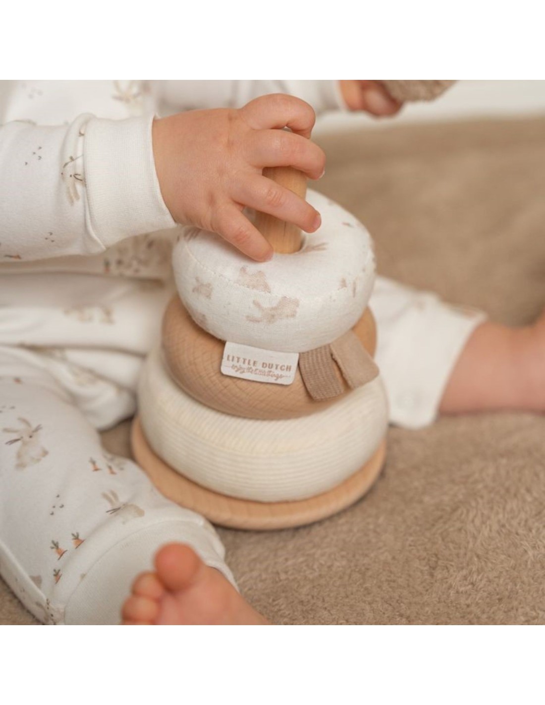 Los anillos apilables blanditos Ba Bunny FSC de Little Dutch están diseñados para que los más pequeños se diviertan mientras desarrollan sus habilidades motoras y sensoriales. Fabricados en materiales suaves y seguros, presentan diferentes colores, texturas y un diseño con el simpático conejito Ba Bunny como protagonista. Al apilar, agarrar y explorar los anillos, los bebés trabajan la coordinación mano-ojo, la motricidad fina y la percepción sensorial de una forma lúdica y natural.