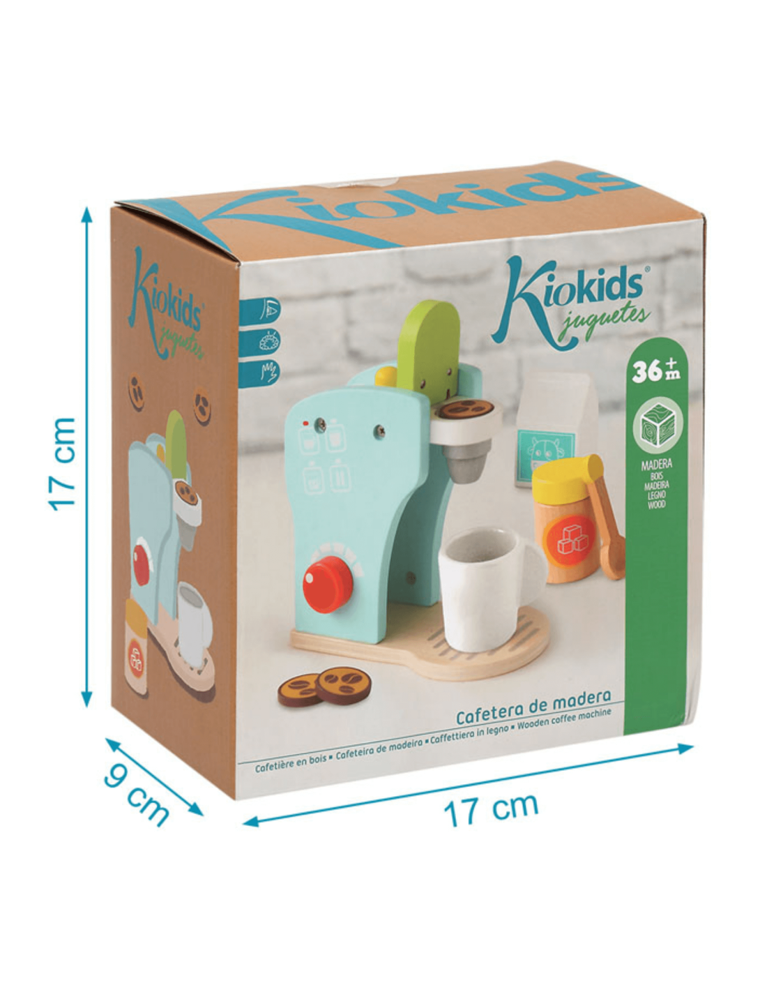La cafetera de madera Kiokids 17x9x15 cm es un juguete educativo que fomenta el juego de imitación y la creatividad en los niños a partir de 3 años. Con un diseño realista y múltiples accesorios, los peques podrán preparar su “café” como los mayores, desarrollando la imaginación, la coordinación y las habilidades sociales. Incluye botella de leche, cápsulas de café, taza, azucarera y cuchara, lo que permite recrear situaciones cotidianas de forma divertida y segura. Su mecanismo simula el uso de cápsulas: el niño coloca una cápsula en la cafetera, baja la tapa y el café cae en la taza. Fabricada íntegramente en madera de alta calidad y pintada con pintura al agua no tóxica, es un juguete duradero, sostenible y seguro para los más pequeños.