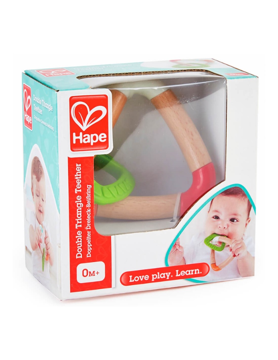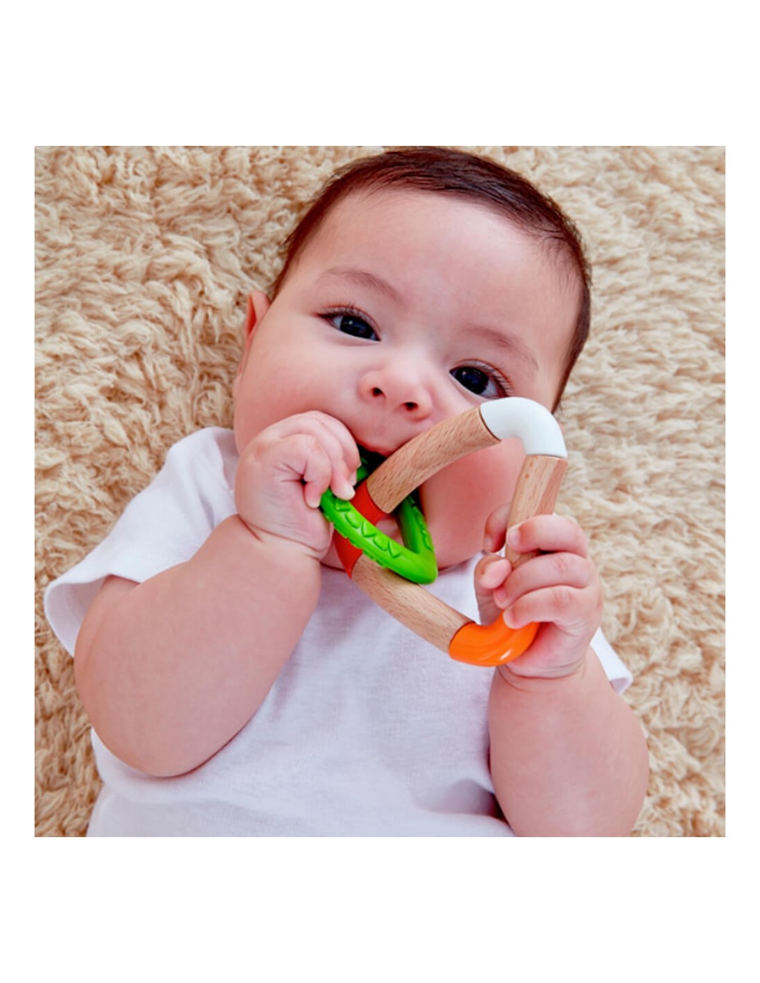 Alivio para la dentición: Diseñado para calmar las molestias de los bebés durante la salida de los dientes. Colores y formas atractivas: Estimula visualmente al bebé y capta su atención. Asa de madera: Suave al tacto, segura para morder y ergonómica para las manos pequeñas. Juego dinámico: Triángulos móviles que fomentan el desarrollo de las habilidades motoras básicas. Estimulación motriz fina: Segmentos giratorios de madera que ayudan en el desarrollo de la coordinación y destreza manual.