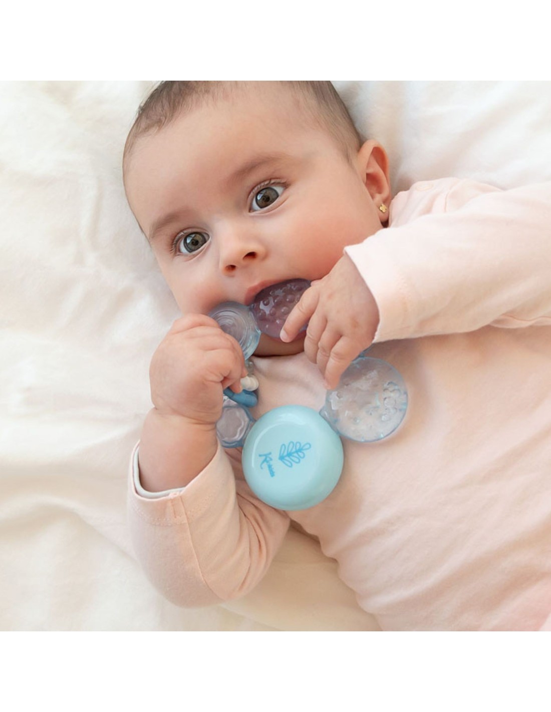 El Mordedor Petits Moments de 11cm de Kiokids está diseñado para acompañar a tu bebé durante el proceso de dentición, que suele comenzar entre los 4 y 7 meses. En esta etapa, es común que el bebé babee más y tenga necesidad de morder objetos debido a la presión y molestias en las encías. Este mordedor, con relleno de agua esterilizada, puede guardarse en el frigorífico para ofrecer un efecto refrescante y calmante, ideal para reducir la inflamación y el dolor. Su diseño ergonómico lo hace fácil de sujetar incluso por las manitas más pequeñas, y sus texturas variadas estimulan suavemente las encías, proporcionando un masaje reconfortante.