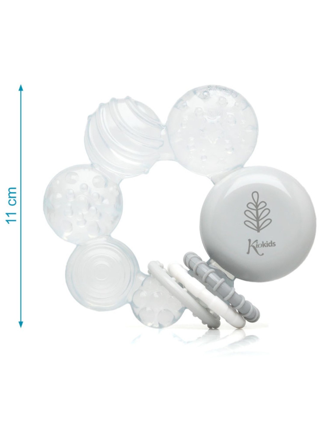 El Mordedor Petits Moments de 11cm de Kiokids está diseñado para acompañar a tu bebé durante el proceso de dentición, que suele comenzar entre los 4 y 7 meses. En esta etapa, es común que el bebé babee más y tenga necesidad de morder objetos debido a la presión y molestias en las encías. Este mordedor, con relleno de agua esterilizada, puede guardarse en el frigorífico para ofrecer un efecto refrescante y calmante, ideal para reducir la inflamación y el dolor. Su diseño ergonómico lo hace fácil de sujetar incluso por las manitas más pequeñas, y sus texturas variadas estimulan suavemente las encías, proporcionando un masaje reconfortante.