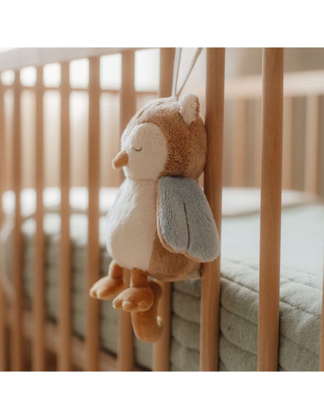 El búho musical de la colección Forest Friends de Little Dutch es un peluche adorable que combina ternura y funcionalidad. Al tirar de la cuerda, emite una melodía de cuna suave y relajante que ayuda al bebé a tranquilizarse y conciliar el sueño. Su textura suave lo convierte también en un elemento de compañía ideal. Diseñado con colores neutros y estampados del bosque, encaja perfectamente en la decoración de la habitación del bebé.