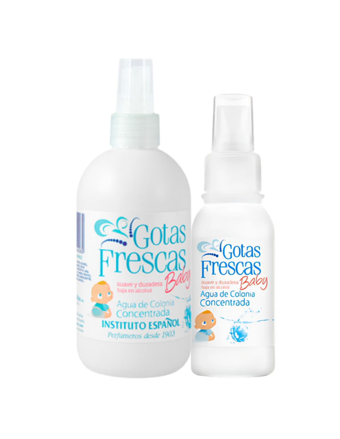 El Pack Colonia Gotas Frescas Baby 250 ml + 80 ml Instituto Español ha sido especialmente formulado para respetar la piel sensible del bebé y proporcionar una fragancia suave, fresca y muy agradable. Con una cuidada combinación de notas florales y frutales, esta colonia sin alcohol ofrece un aroma limpio y duradero que evoca la ternura del baño y la caricia de una piel cuidada. Su fórmula hipoalergénica ha sido testada dermatológicamente, garantizando la máxima tolerancia incluso en las pieles más delicadas.