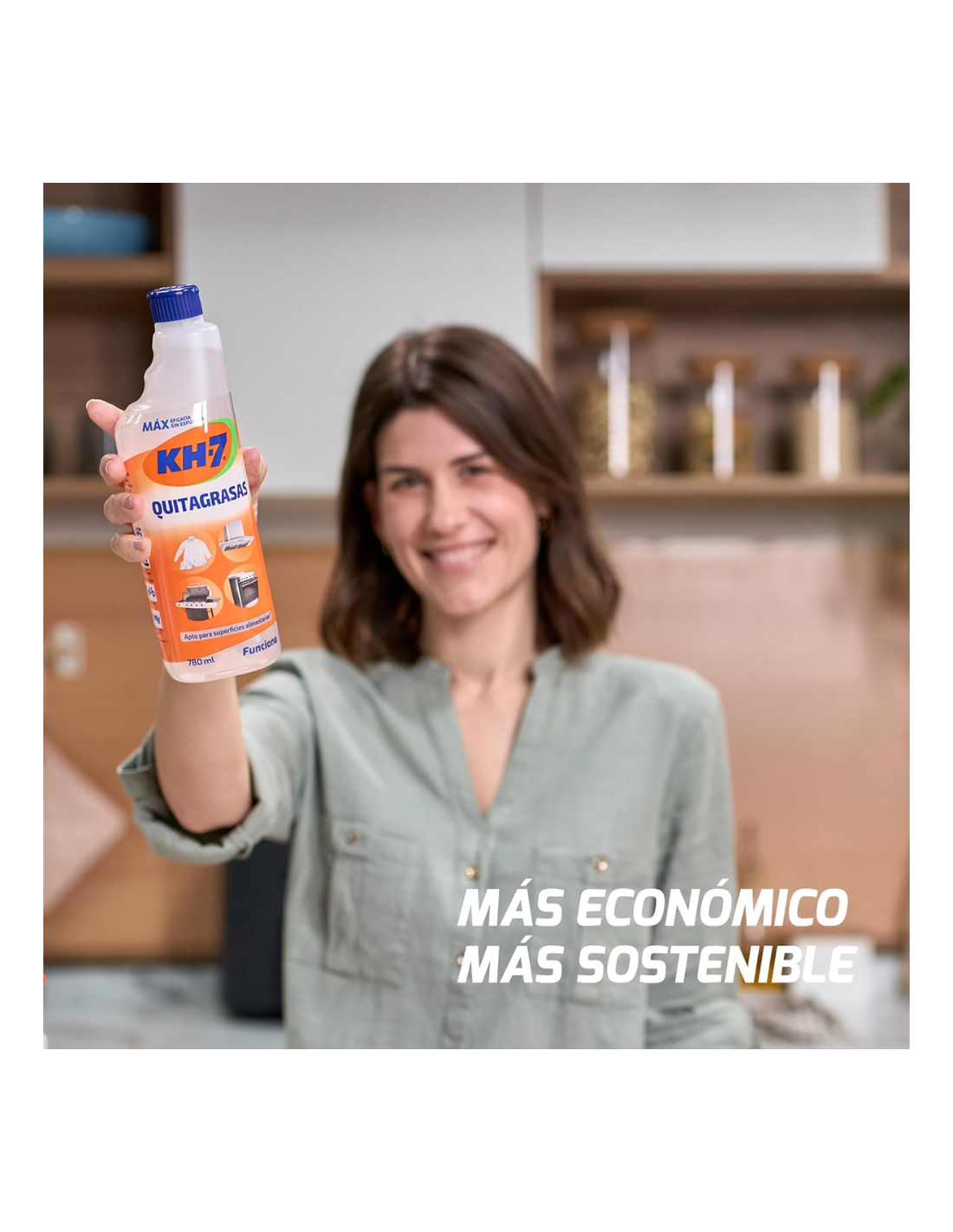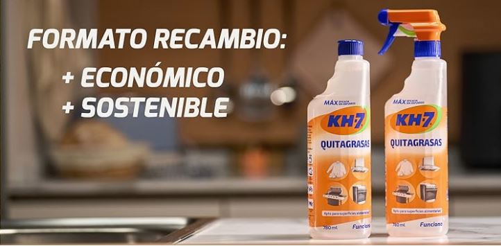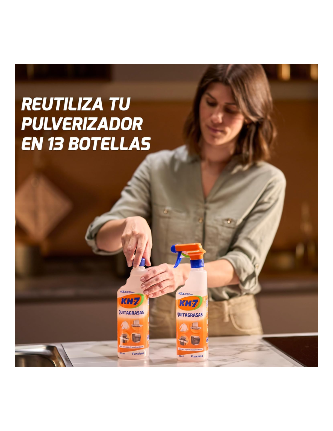 El Recambio KH-7 Quitagrasas 715 ml mantiene la eficacia del formato pulverizador original, ofreciendo la máxima limpieza y eliminación de grasa incrustada.