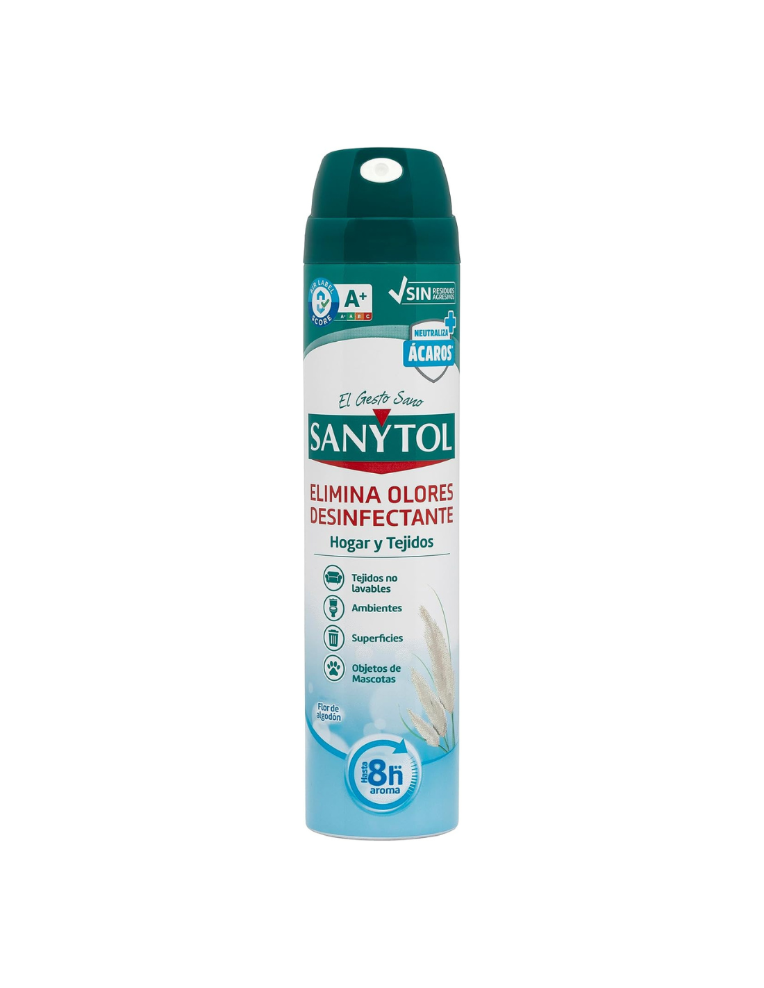 El Desinfectante Hogar y Tejidos Sanytol 300 ml está formulado para garantizar una limpieza profunda en superficies y textiles del hogar. Elimina el 99,9% de bacterias, hongos y virus responsables de malos olores y posibles contagios, dejando un ambiente fresco y seguro. Es ideal para cojines, sofás, cortinas, alfombras, ropa, tapicerías y otros textiles que no pueden lavarse con frecuencia, además de usarse en superficies de uso cotidiano. Su formato spray de 300 ml es práctico y fácil de aplicar.