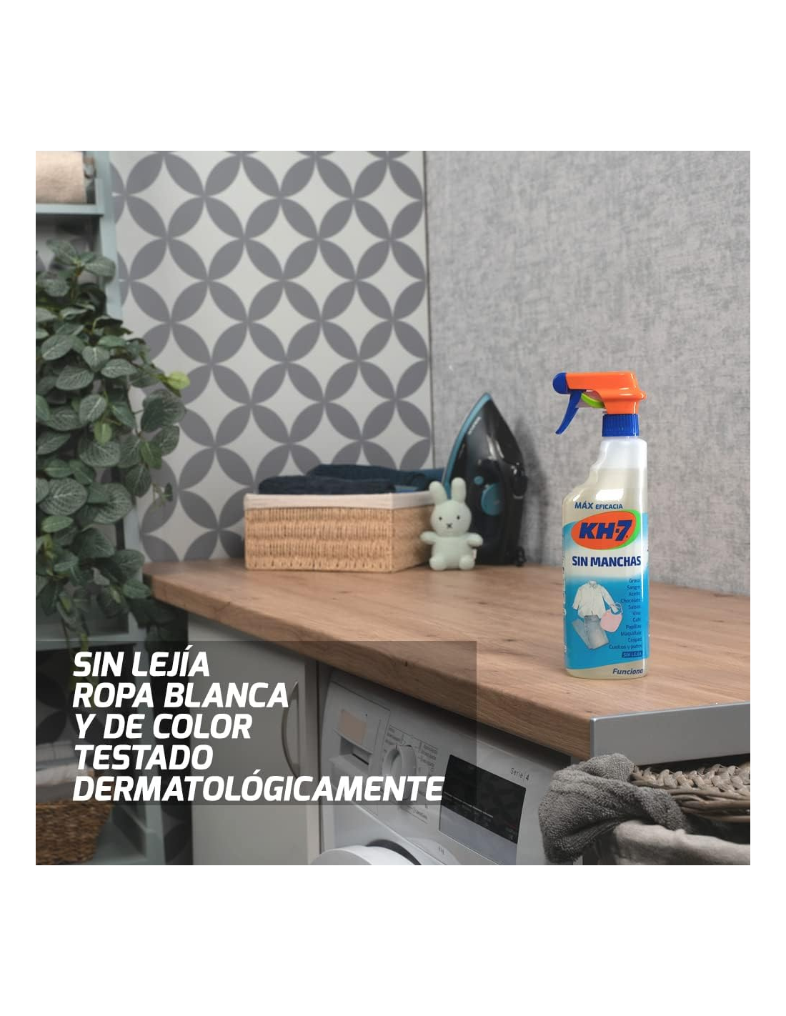 No, KH-7 Sin Manchas no contiene lejía en su fórmula. A pesar de no tener lejía, es muy eficaz para eliminar manchas difíciles, gracias a sus potentes enzimas que actúan directamente sobre la suciedad sin dañar los tejidos.