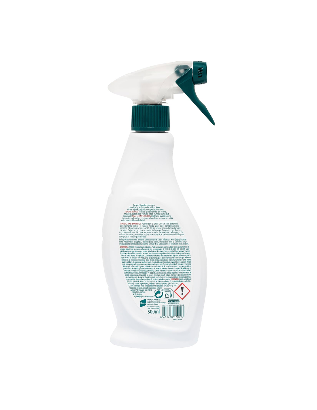El Spray Elimina Olores Textil Sanytol 500 ml es la solución perfecta para eliminar los olores más persistentes en tejidos del hogar. Su fórmula desinfectante sin lejía elimina bacterias causantes de malos olores, aportando un frescor agradable y duradero. Ideal para aplicar en sofás, cojines, alfombras, cortinas, ropa o tapicerías, devolviendo el frescor a los tejidos sin necesidad de lavarlos con frecuencia.