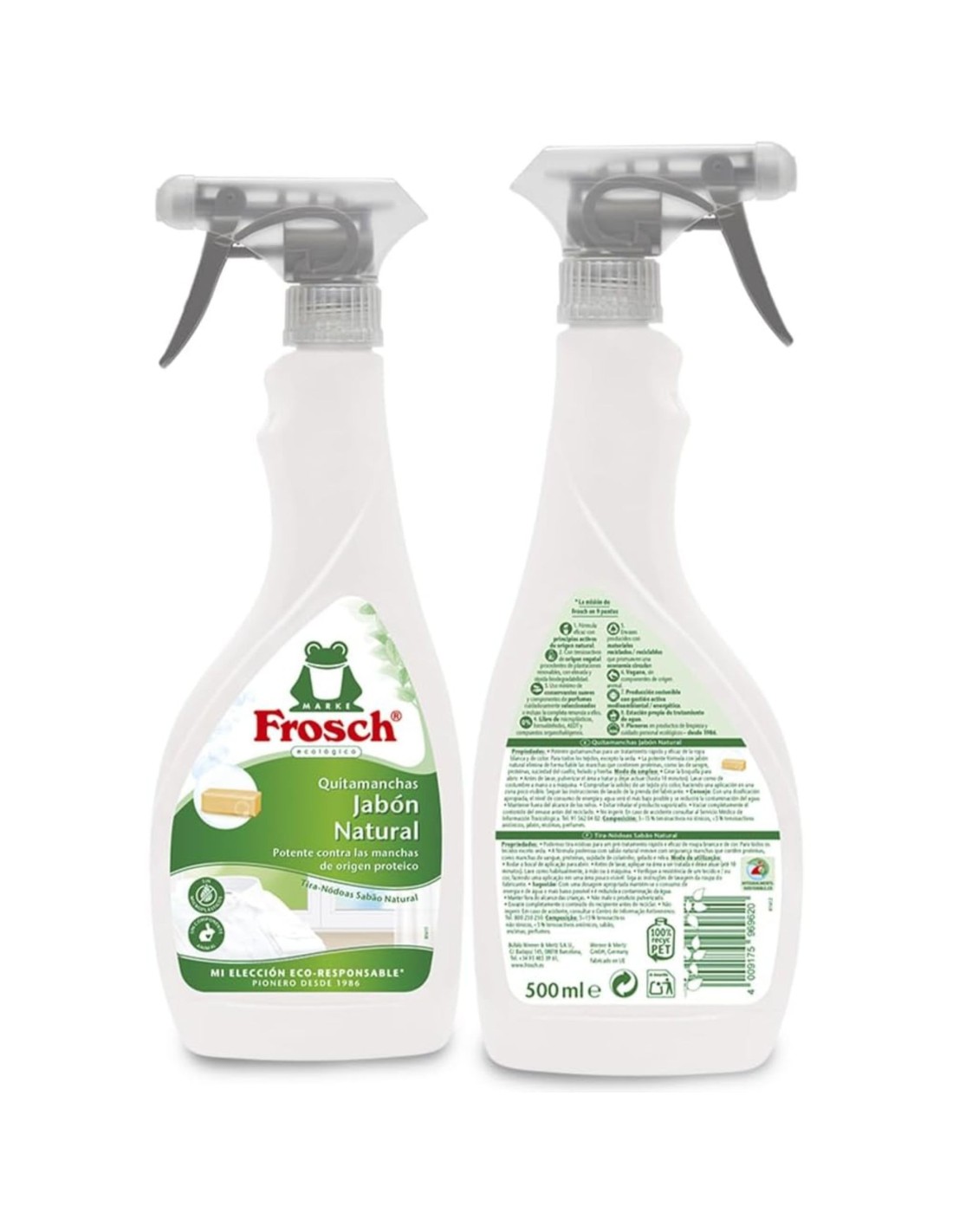 El Quitamanchas Frosch Jabón Natural es la solución perfecta para tratar manchas resistentes en la ropa antes del lavado. Gracias a su fórmula enriquecida con jabón natural, elimina eficazmente manchas de grasa, frutas, vino, café o salsas, respetando las fibras textiles.