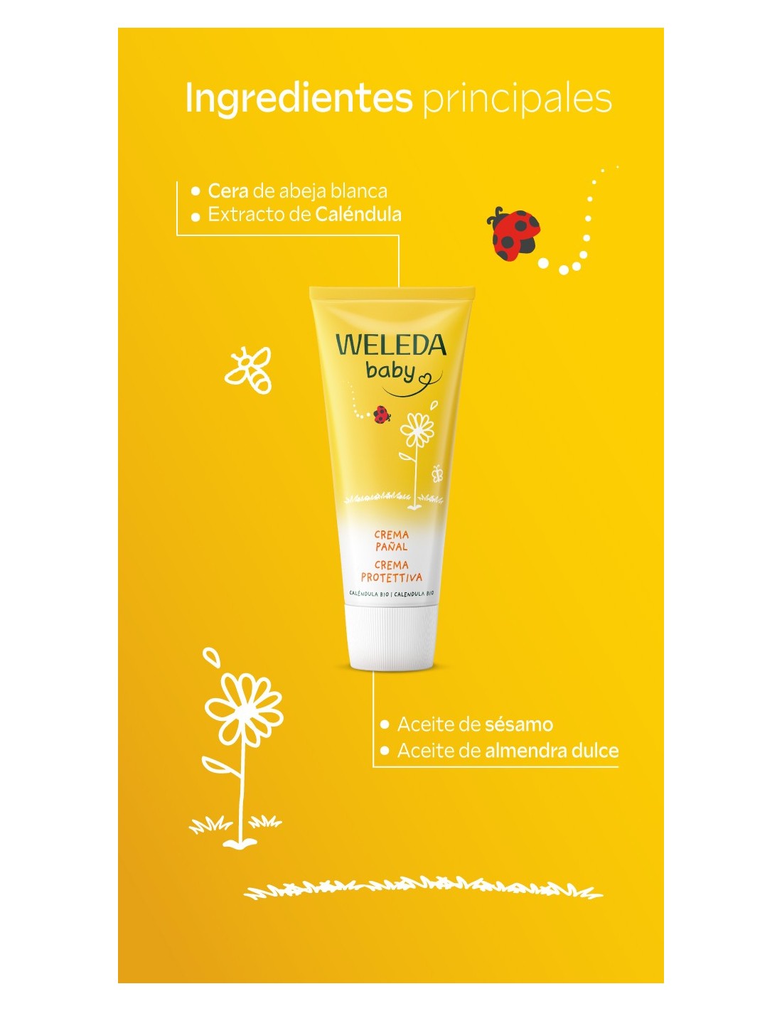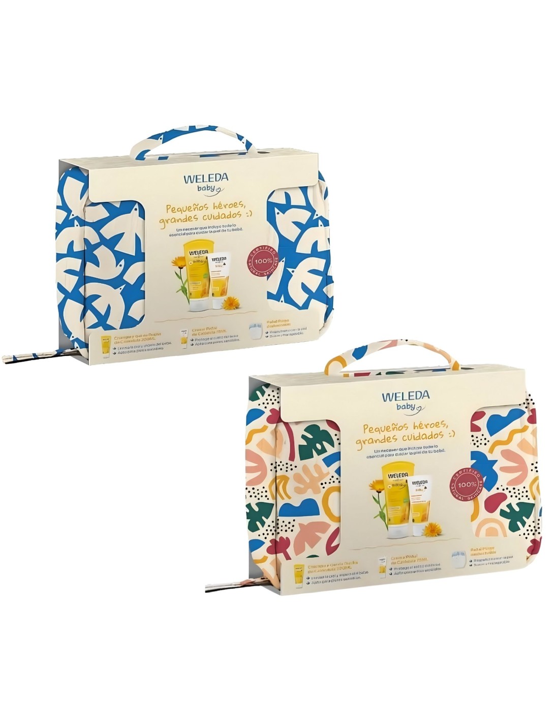 Incluye la Crema Pañal de Caléndula Weleda, que protege eficazmente frente a la humedad del pañal ayudando a prevenir irritaciones y rojeces, y el Champú & Gel de Ducha de Caléndula Weleda, una fórmula 2-en-1 que limpia suavemente piel y cabello sin resecar, respetando el equilibrio natural cutáneo.