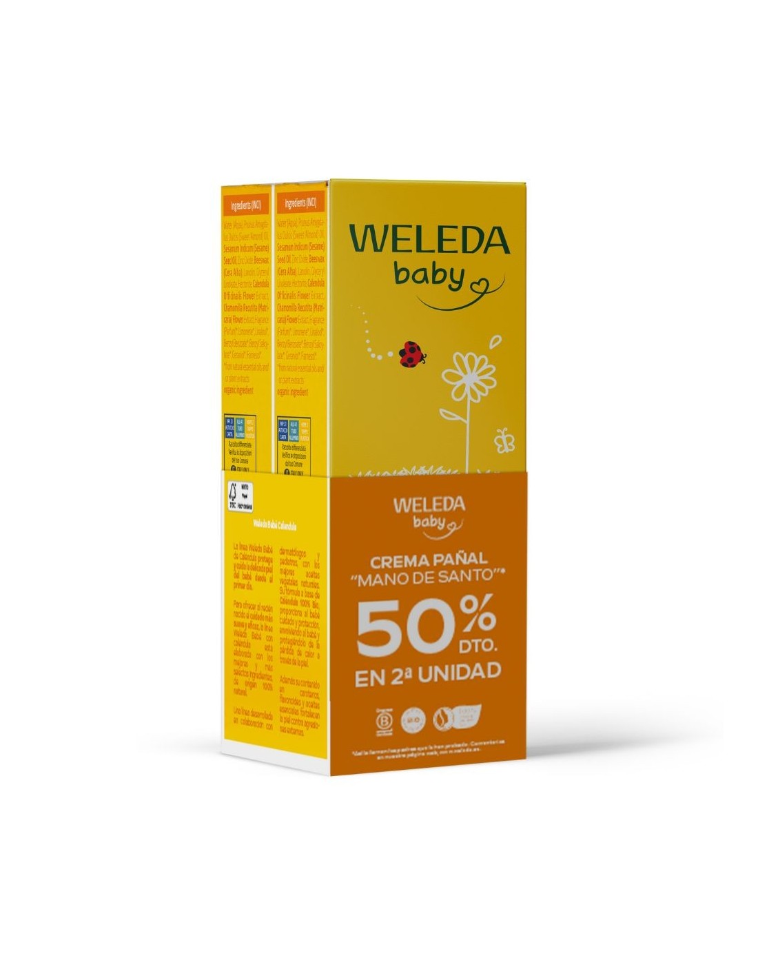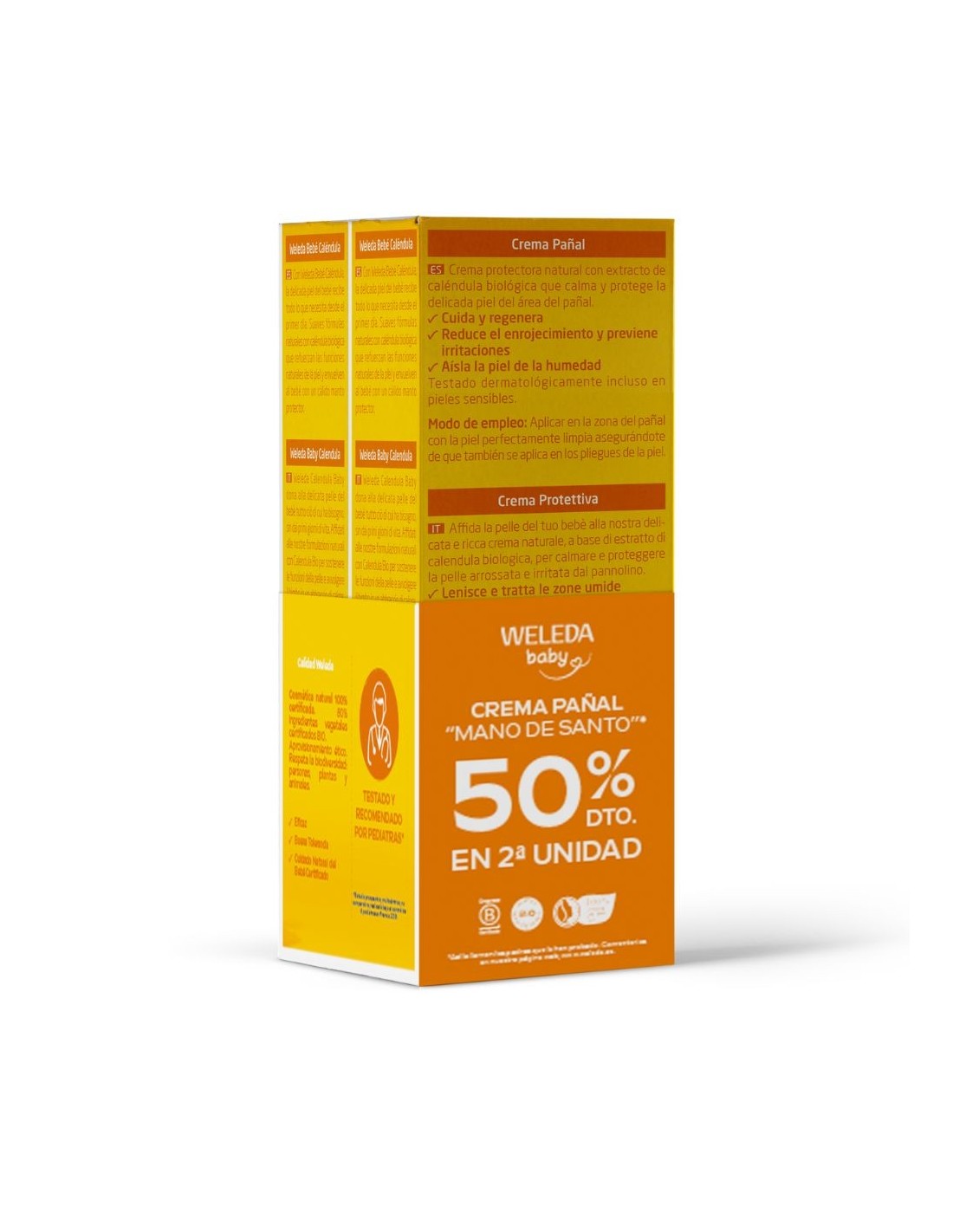 Con caléndula bio, aceite de almendra dulce y óxido de zinc.