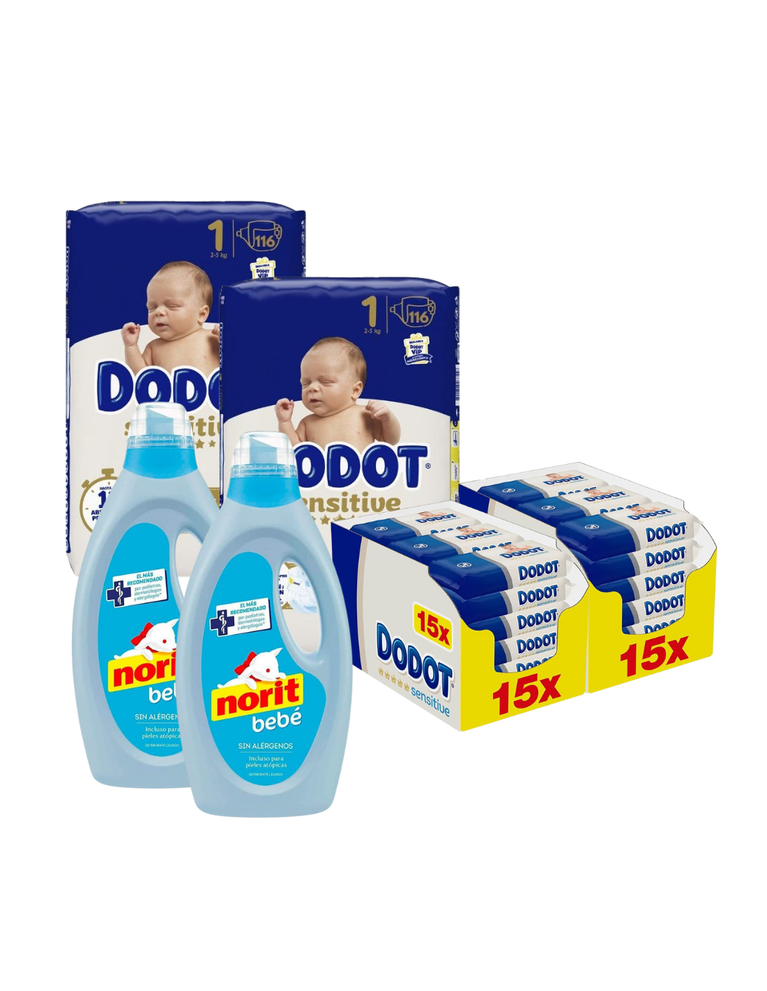 Pack Ahorro Pañales Dodot Talla 1 + Toallitas Sensitive + Norit Bebé - Nappy.es