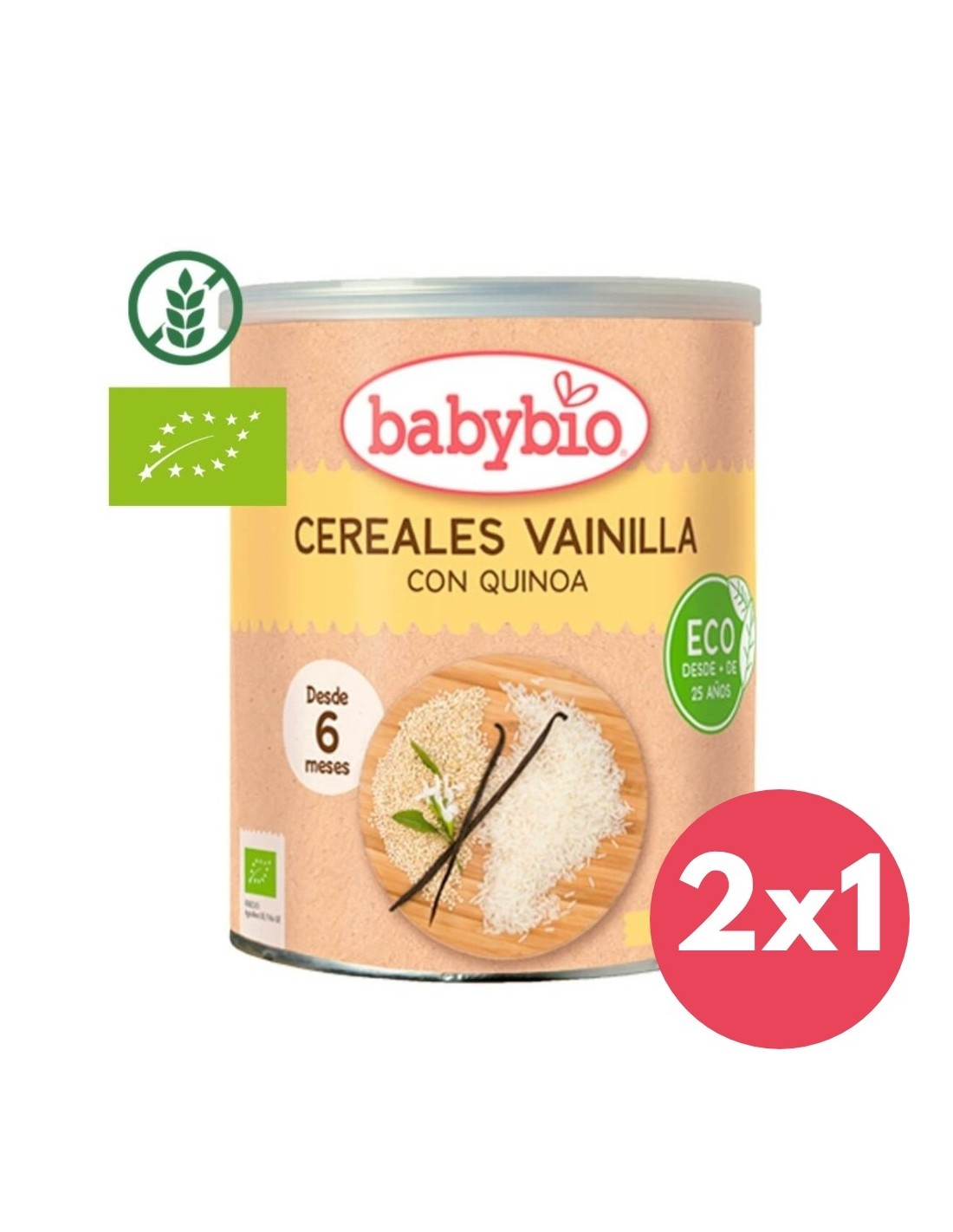 Los cereales Babybio Vainilla & Quinoa destacan por su fórmula ecológica que combina el dulzor natural de la vainilla con las propiedades nutritivas de la quinoa. Este pseudocereal es rico en proteínas de alta calidad y fibra, promoviendo una buena digestión y el desarrollo saludable del bebé. Al estar libre de gluten, son aptos para bebés con sistemas digestivos sensibles o intolerancias. Sin azúcares añadidos, estos cereales mantienen un perfil saludable, ideal para una dieta equilibrada. Además, su textura fina facilita la disolución en leche templada, ofreciendo una preparación rápida y sin grumos, adaptada a las necesidades de cada etapa del bebé.