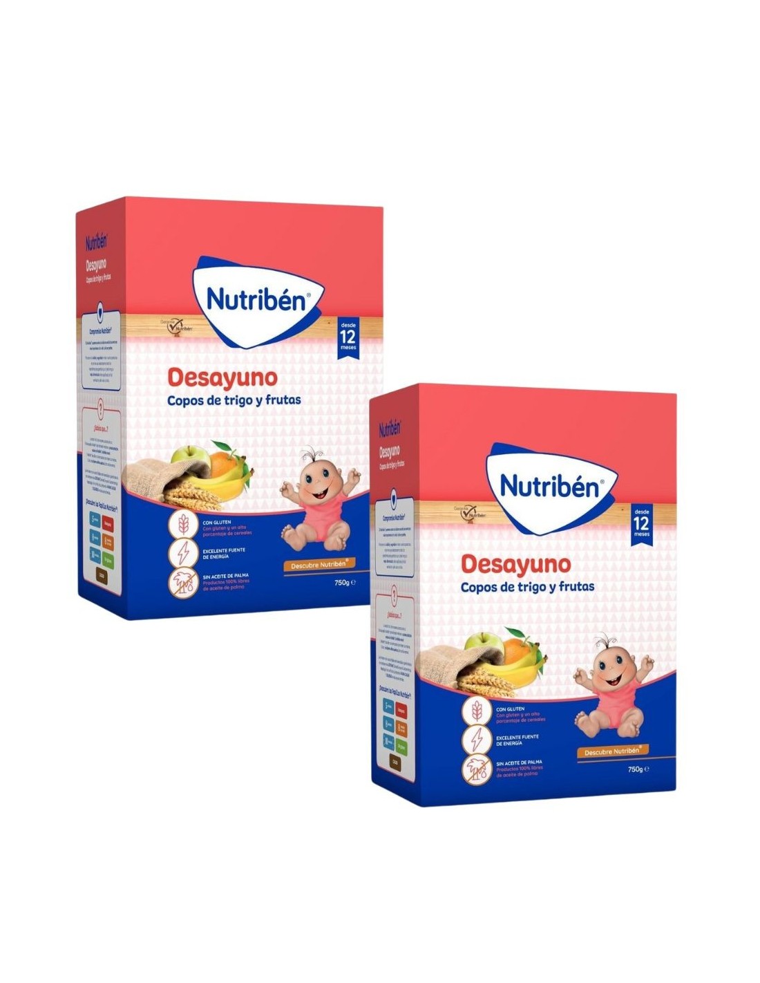 Este producto contiene 2 cajas del Desayuno copos de trigo y frutas Nutribén (750g cada una)